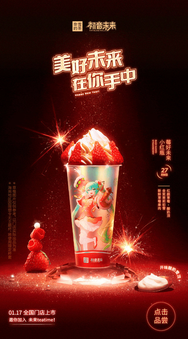 奈雪×初音未来|莓好未来小红瓶,和MIKU新年干杯!