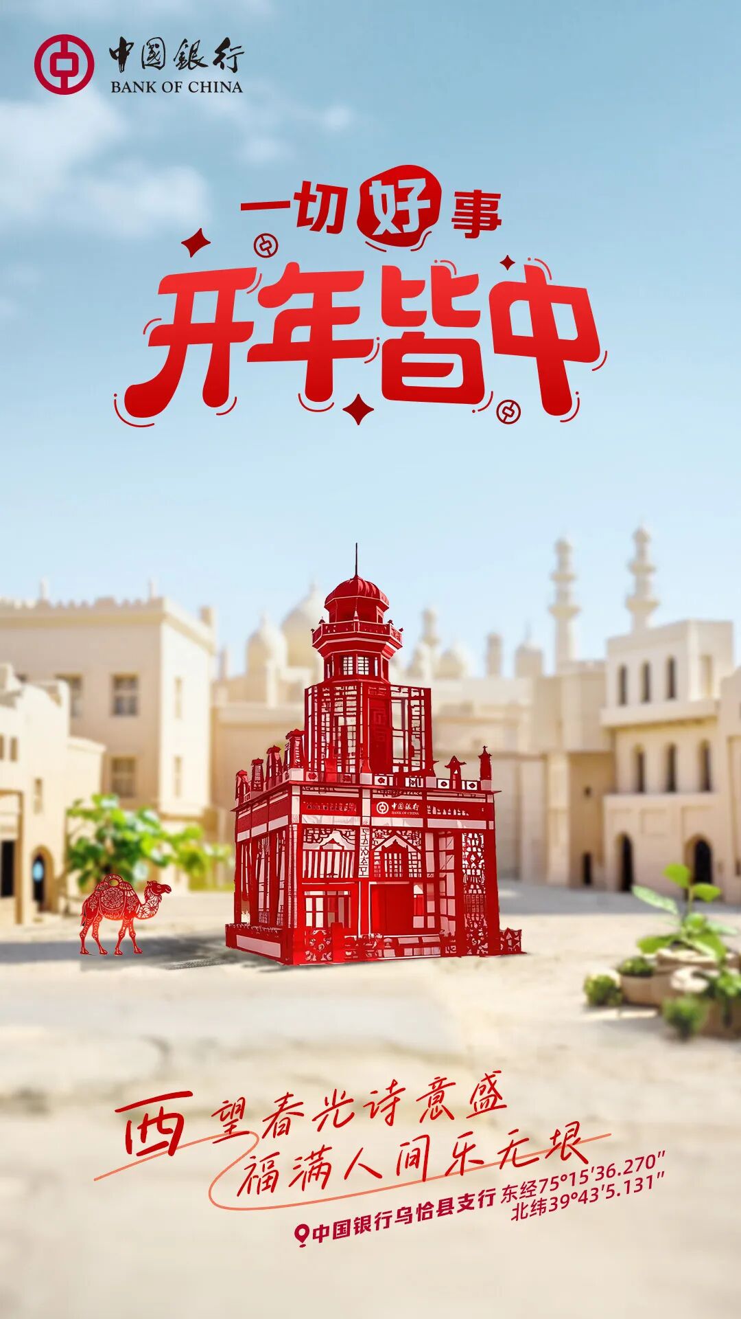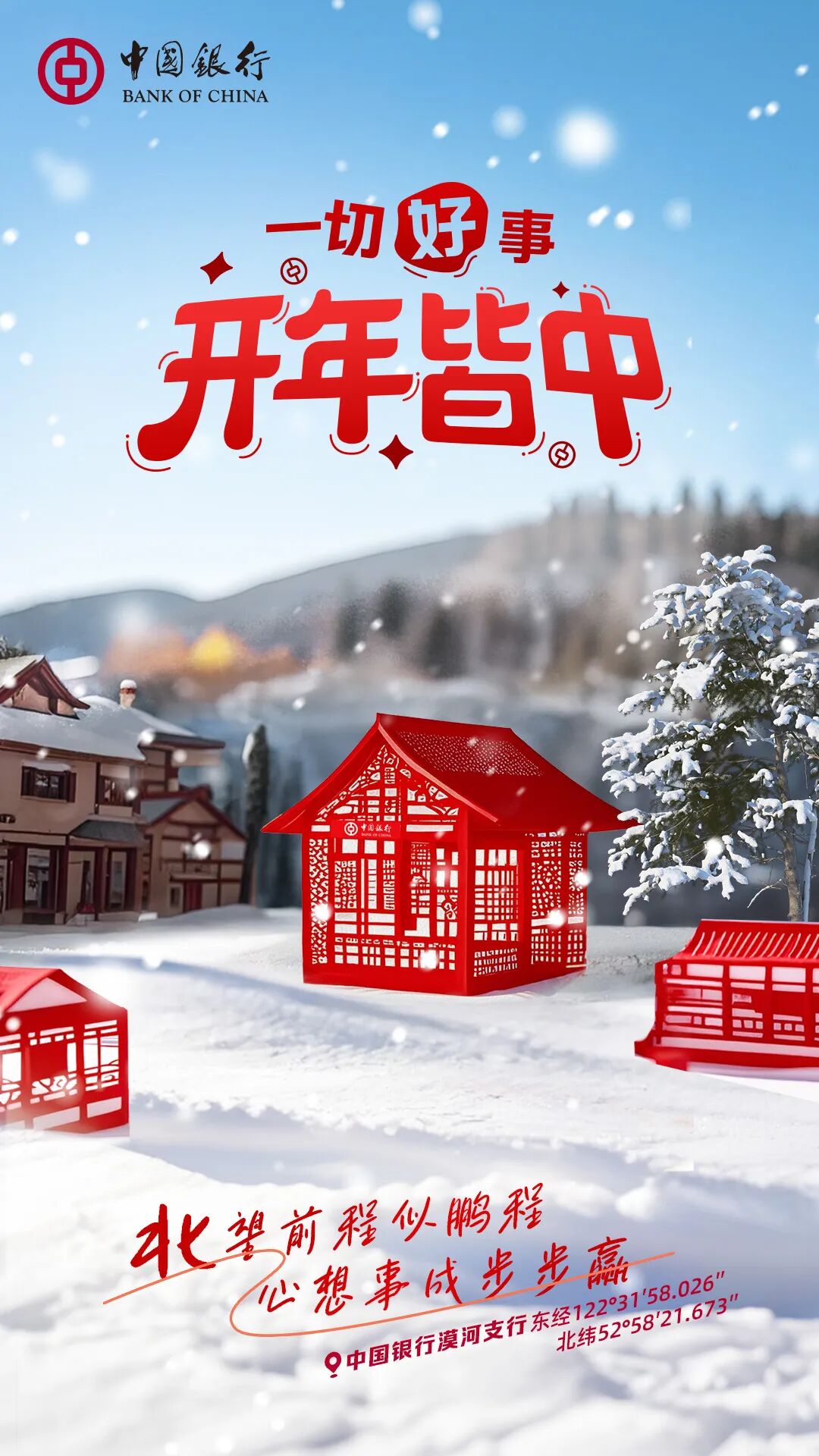 推荐:「点击打印图片」展示了中行总行及上海、三沙、乌恰县、漠河等地分行的景象,并配以吉祥话语,传递美好祝愿,庆祝中国银行成立 113 周年。