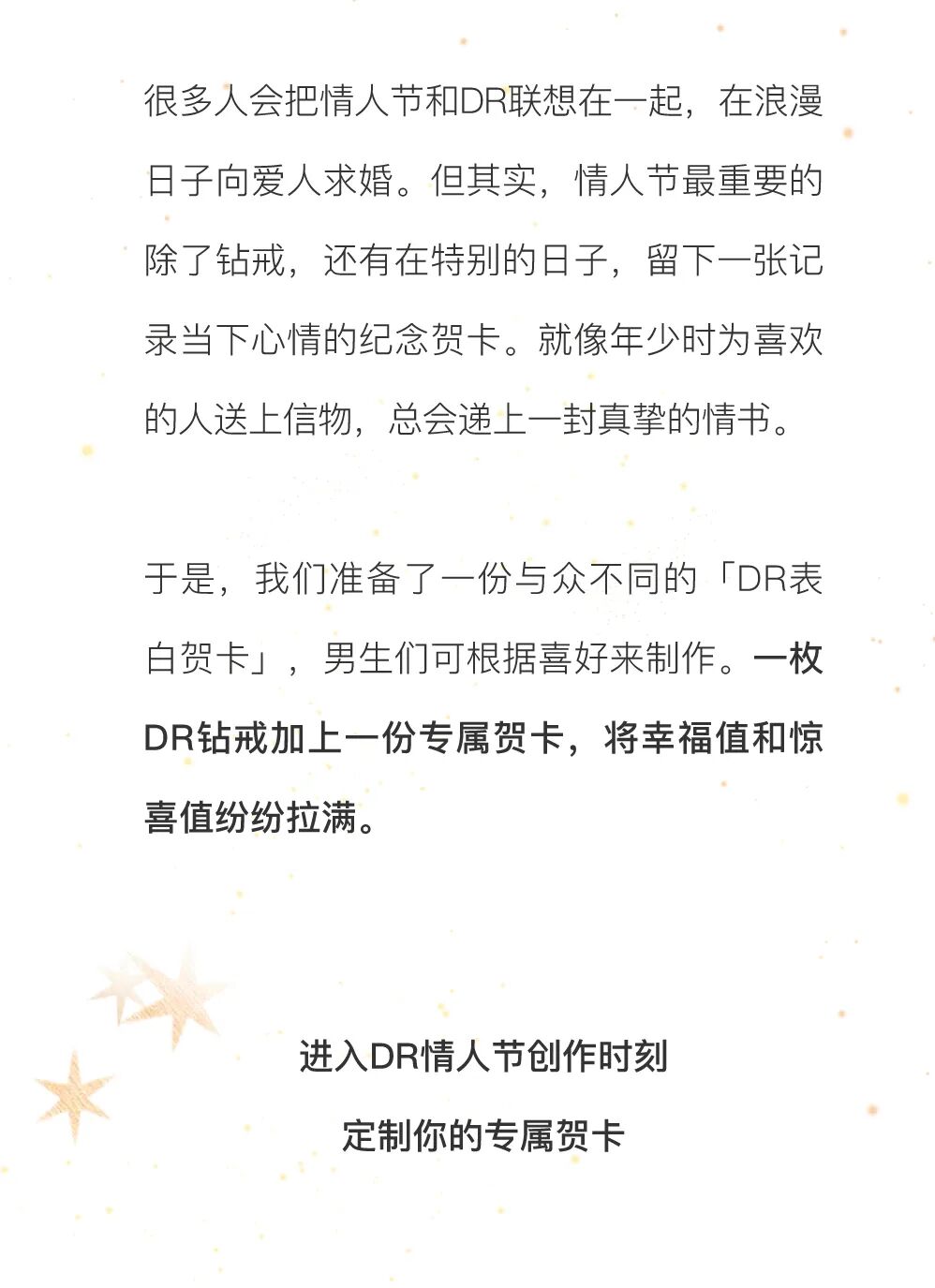 推荐:「多组滑动拼接自定义海报」以告白贺卡的方式介绍DR钻戒的各个款式与细节,借此宣传DR钻戒。