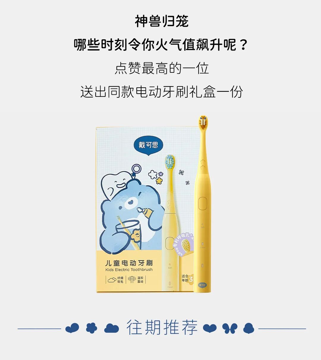 推荐:「点击展开」介绍多款儿童好物,发起互动,「点击切换」分享孩子“调皮瞬间”,点赞最高可获电动牙刷礼盒,借此宣传戴可思母婴。