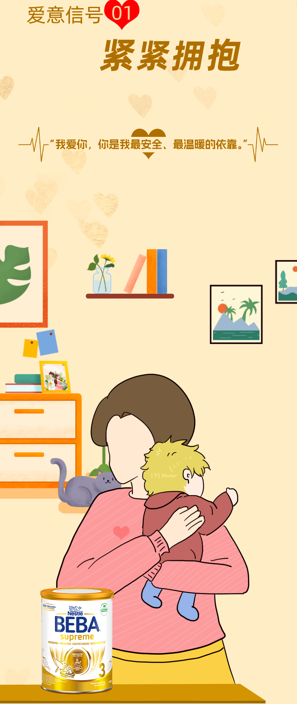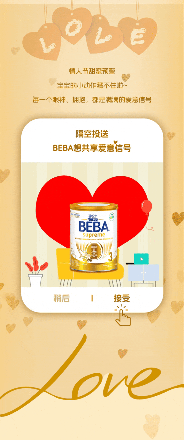推荐:「点击展开」解读宝宝爱意信号,依次「点击切换」介绍奶粉优势,还引导添加福利官微信领隐藏福利,借此宣传德国BEBA3。