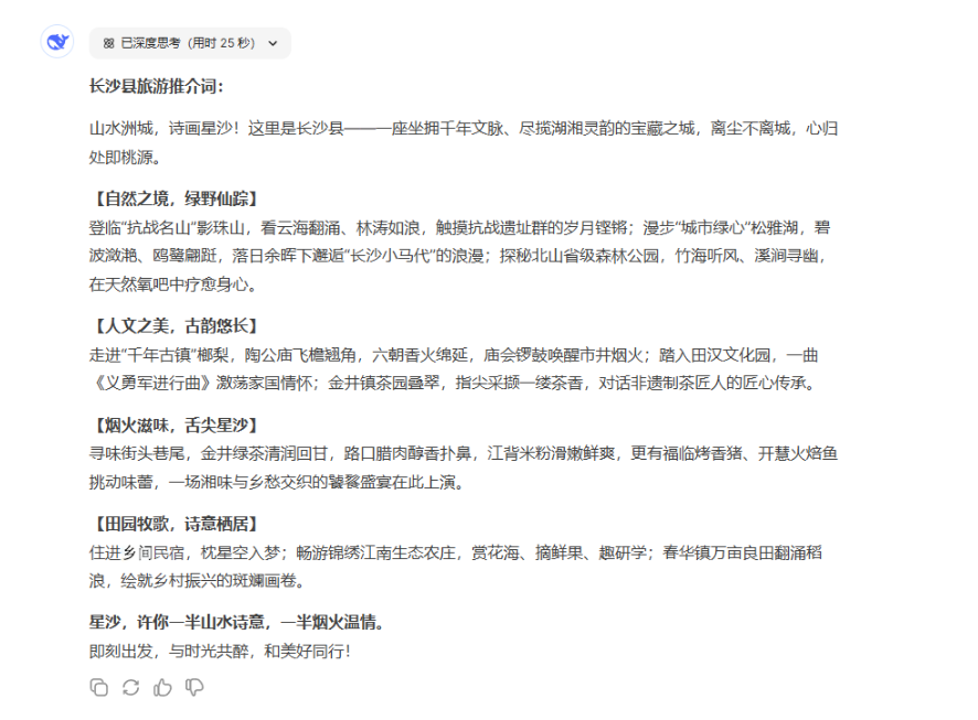 想看DeepSeek做长沙县旅游攻略