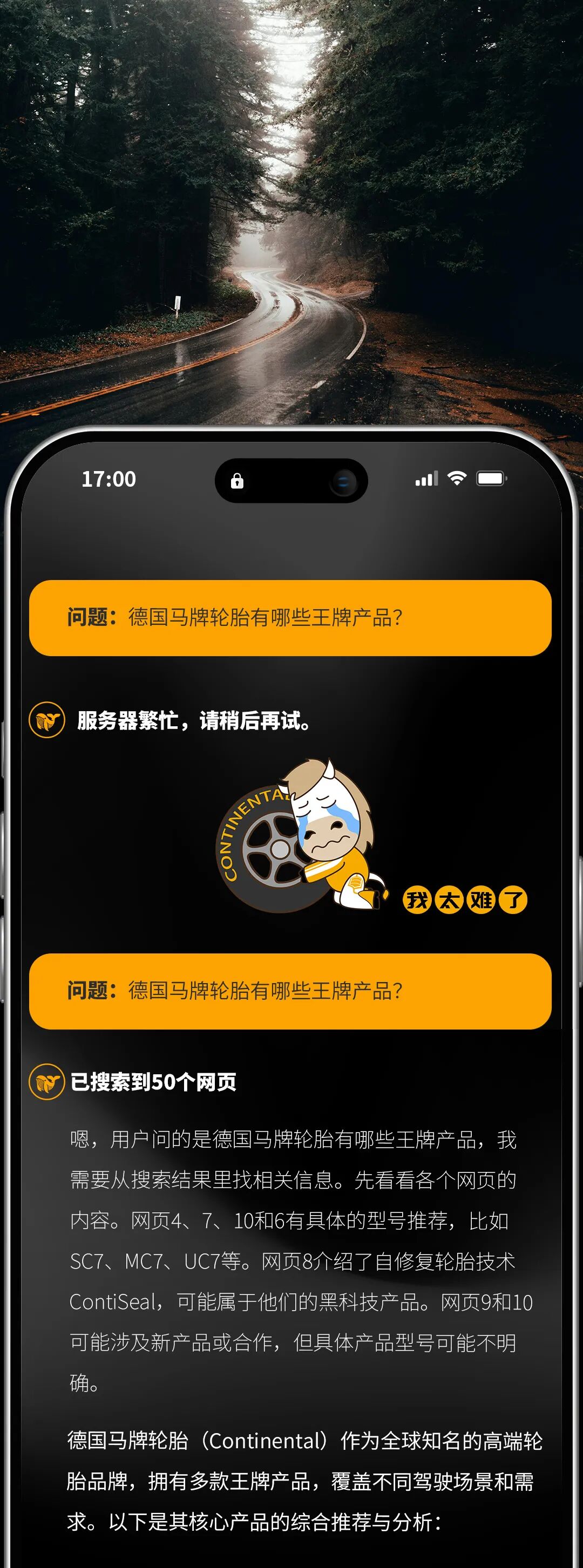 当我们问DeepSeek德国马牌轮胎有哪些推荐产品......