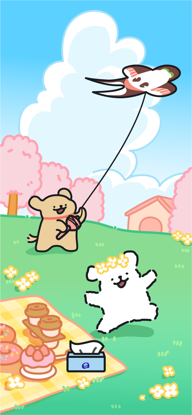 推荐:「点击切换后伸缩式展开」模拟打开线条小狗的春日来信,自动轮播展示限定春日樱花小狗包装,借此宣传维达纸巾。