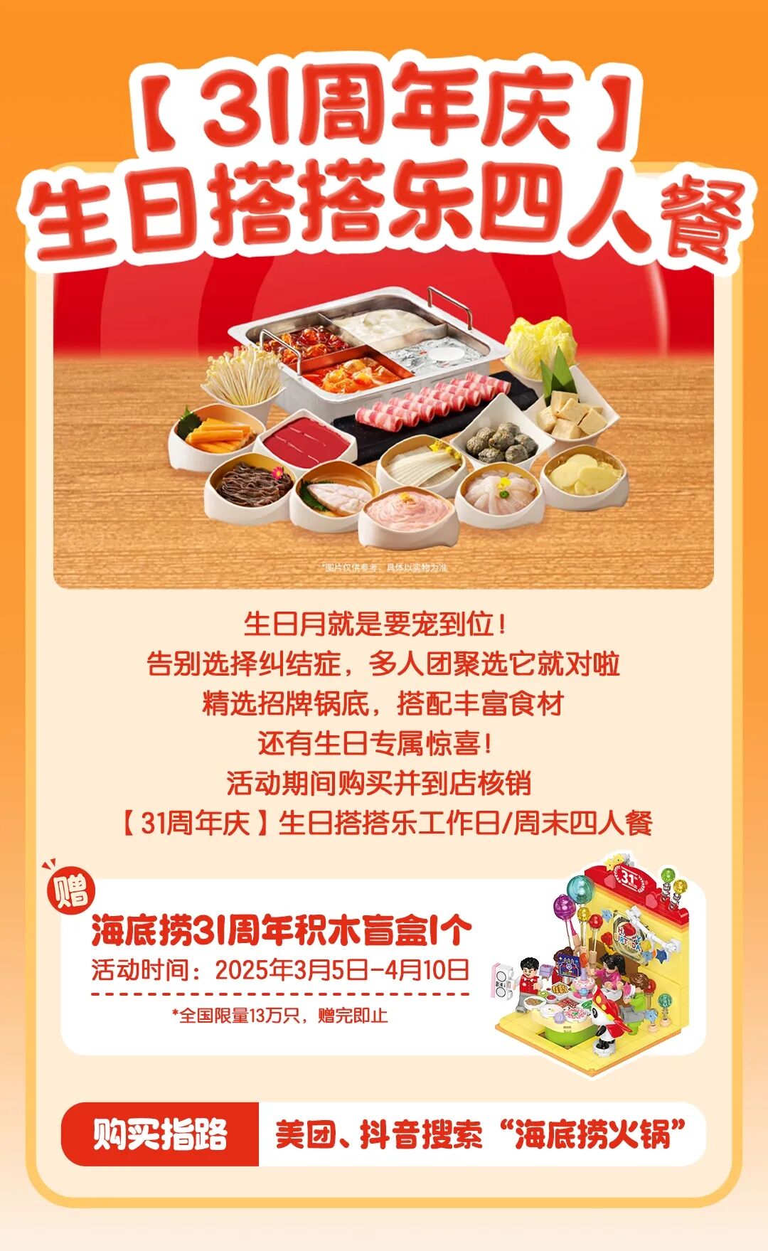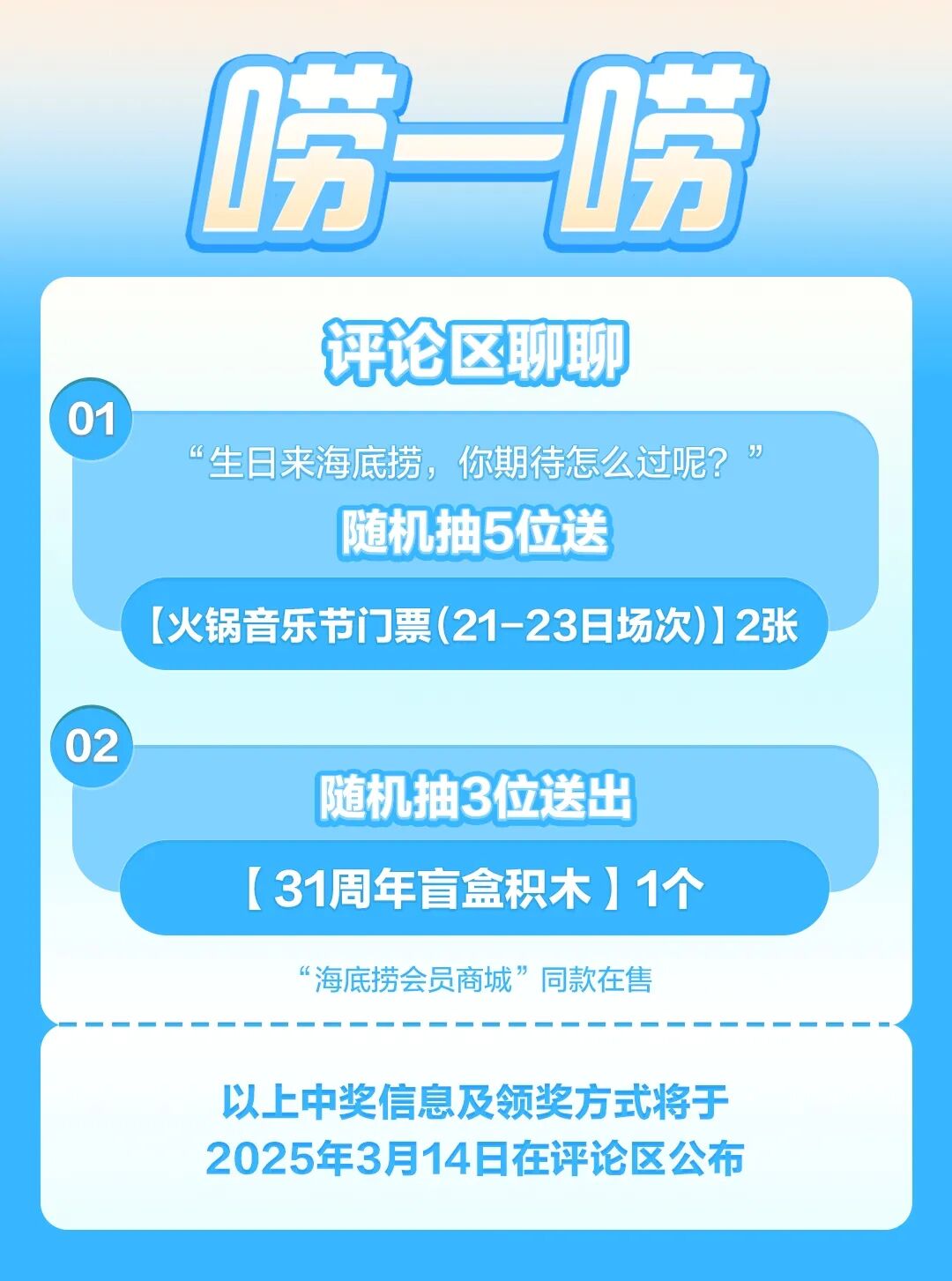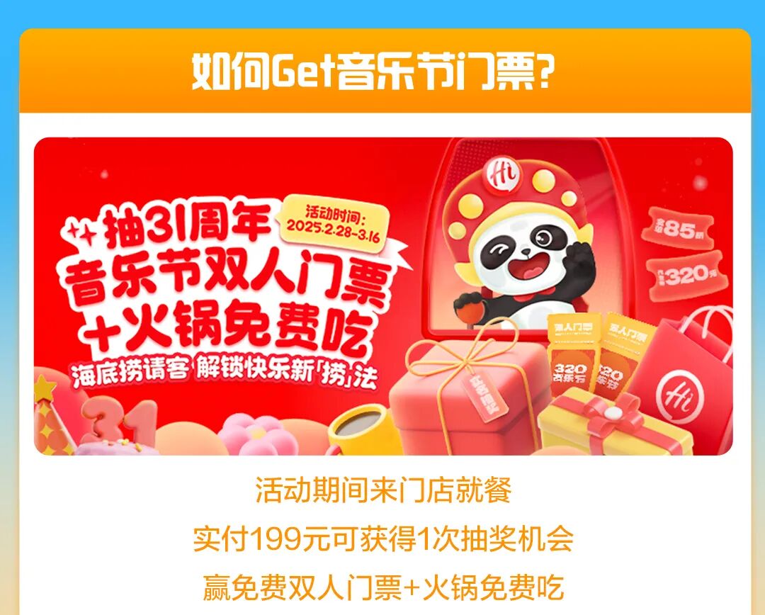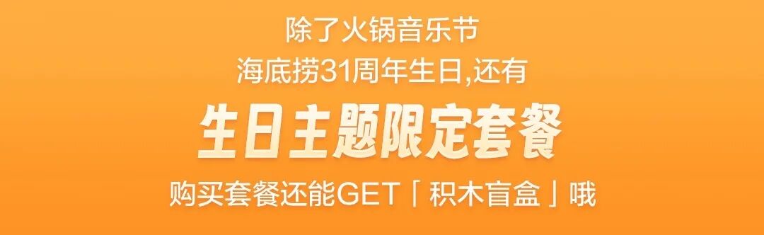 推荐:「点击消失后从头展开」海底捞31周年庆活动,借此宣传火锅音乐节、抽奖赢门票、限定套餐赠盲盒等福利,借此欢庆海底捞31周年。