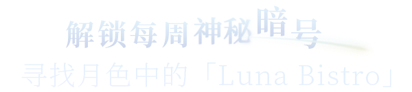 快来解锁9-10月,秋天第③、④场满月和朔月专场的神秘接头暗号,甚至殿堂级的鸡尾酒吧Sober Company也将惊喜加入!在魔都的月色中寻找「Luna Bistro月相小酒馆」的藏身地吧!