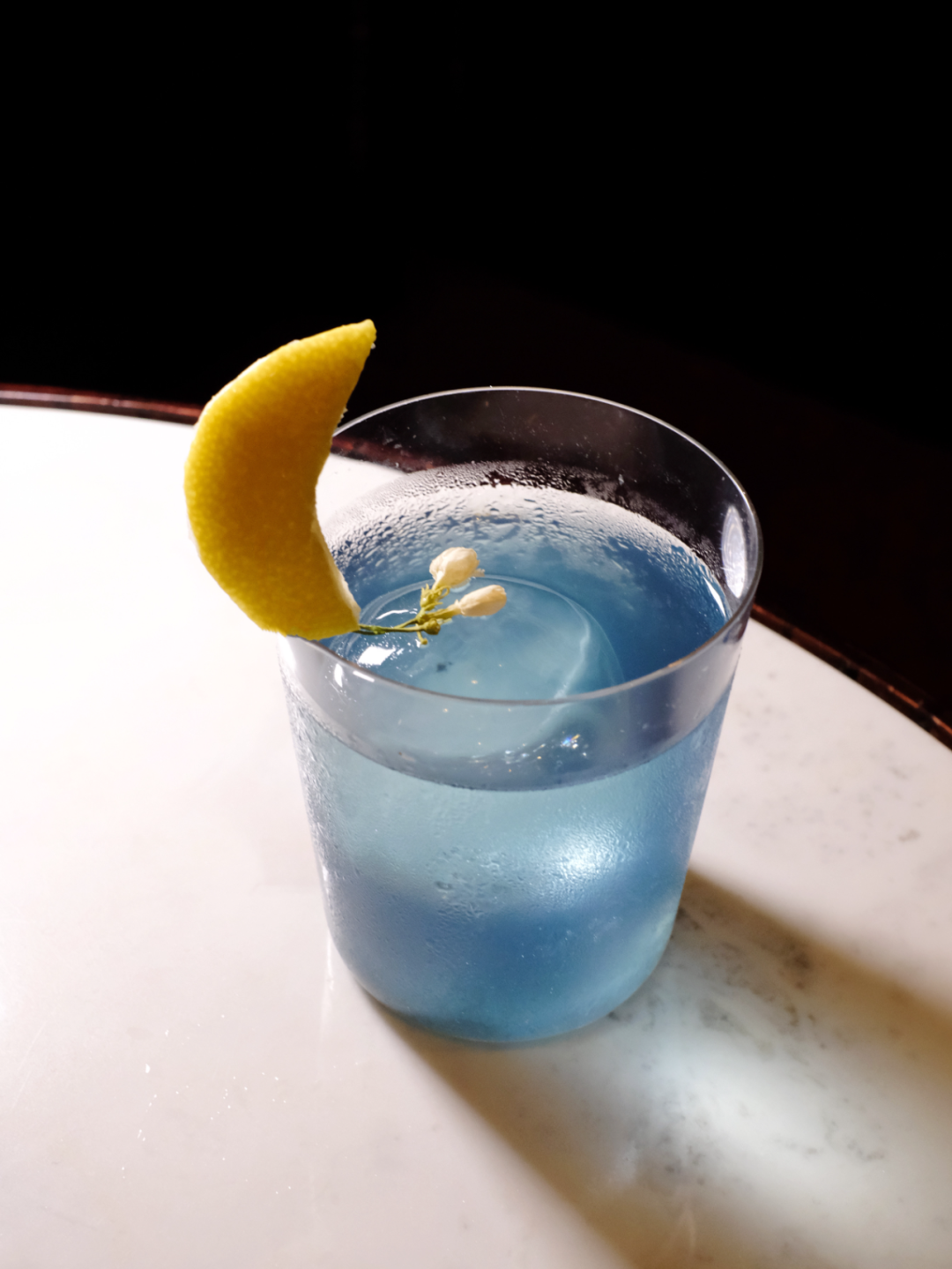 这杯名为「三日月 BLUE」的特调,装饰着一轮“弯月”颜值在线超级出片,冷气在杯壁凝结成水珠,在灯光下有一种星空般闪闪发亮的错觉,但千万别被ta的颜值所“欺骗”,这杯特调相对来说口味比较烈的哦!