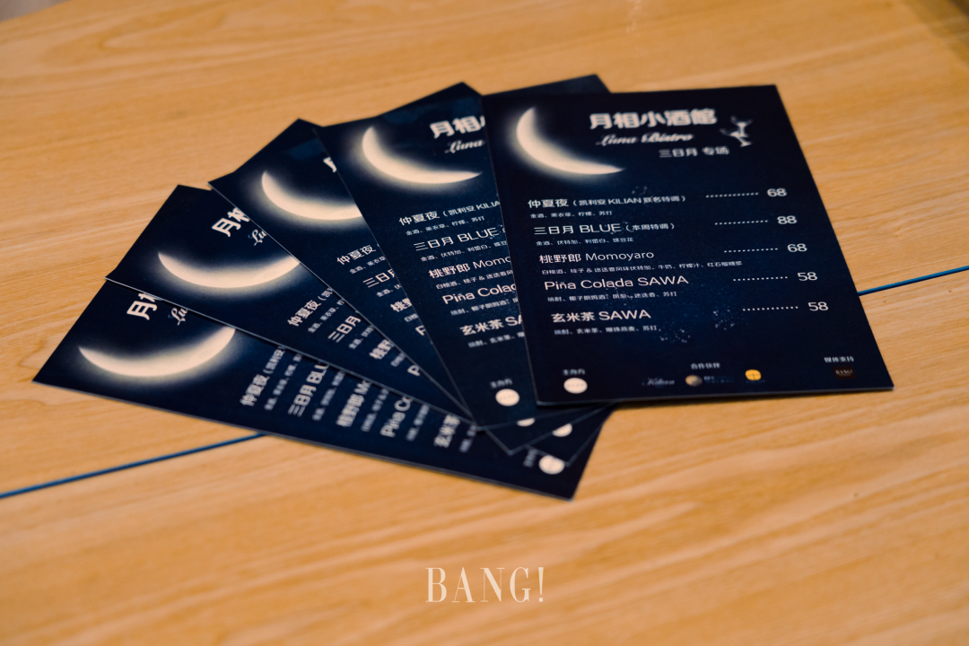 除了会有各种跨界联名主题和神秘酒单,就连地点也是会以特定暗号的形式公布!「Luna Bistro月相小酒馆」的第①次现身在7月22日农历六月廿四,月相为代表着神秘与高贵的下三日月。而这次月相,是由沪上鸡尾酒吧天花板之一SUZU BAR 的主理人铃木俊矢先生作为客座主理人,亲自研发了「三日月专场」的限定特调。