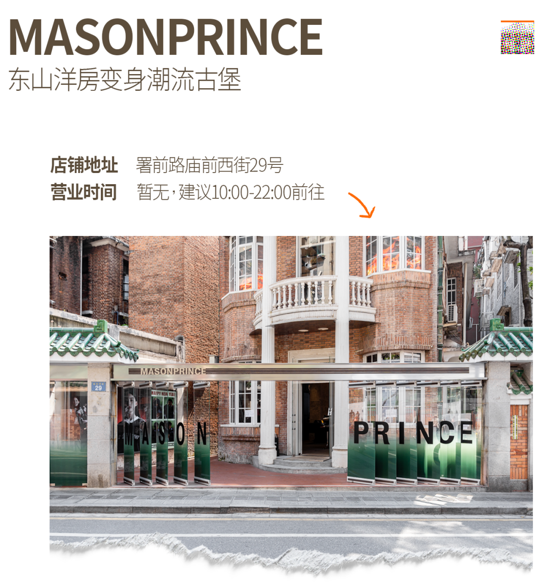 在广州潮流宇宙中心——东山口,最近又冒出一座两层高的独栋古堡,是复古潮牌MASONPRINCE的首家实体概念店。