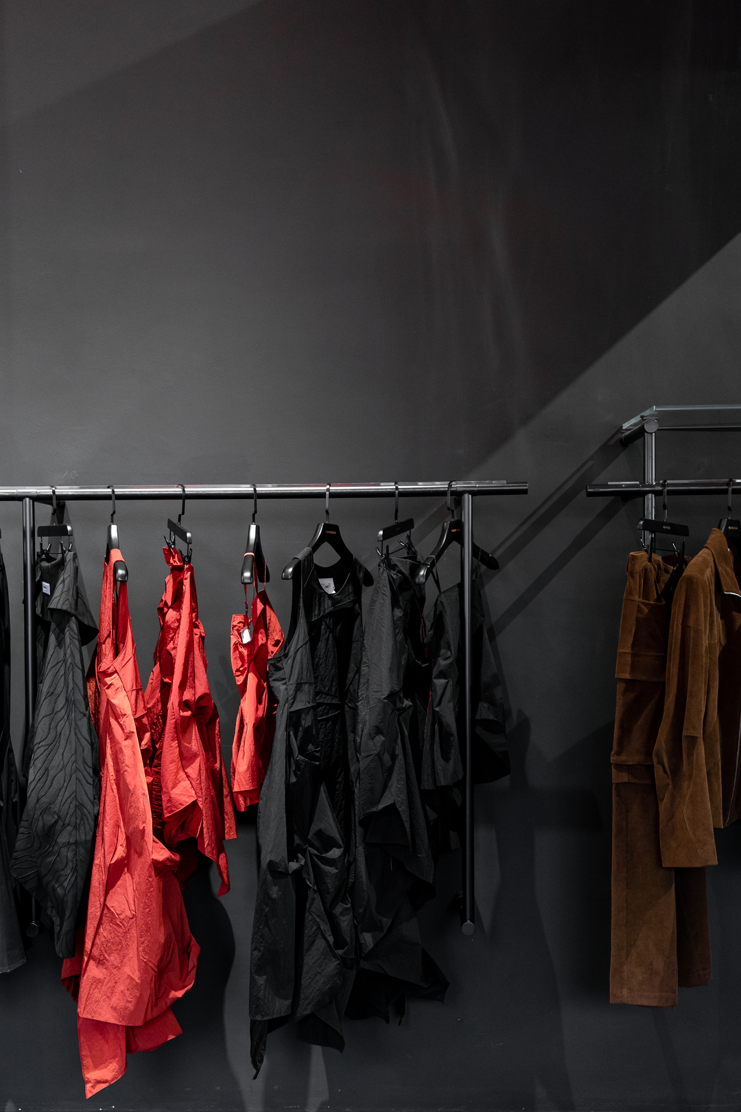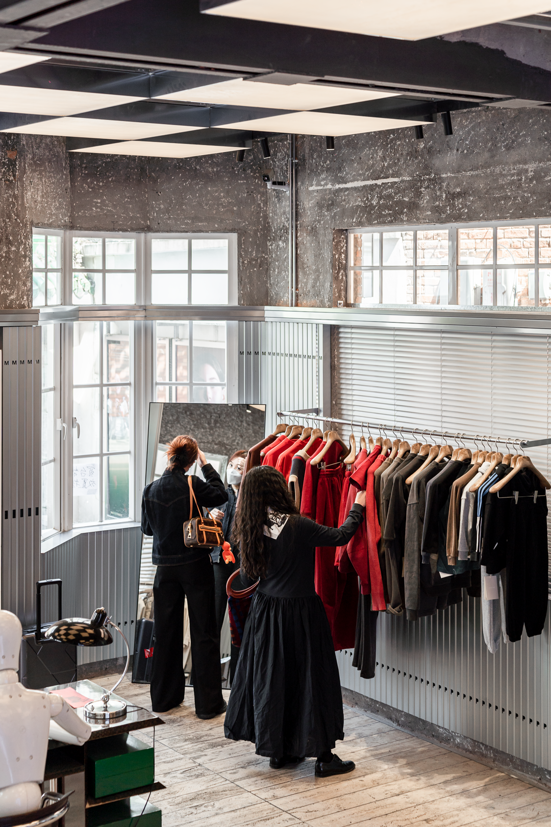 空间错落有致地陈列的当季的新款,版型和裁剪都很有设计感。不妨上身试穿,或许会有更多搭配灵感。
