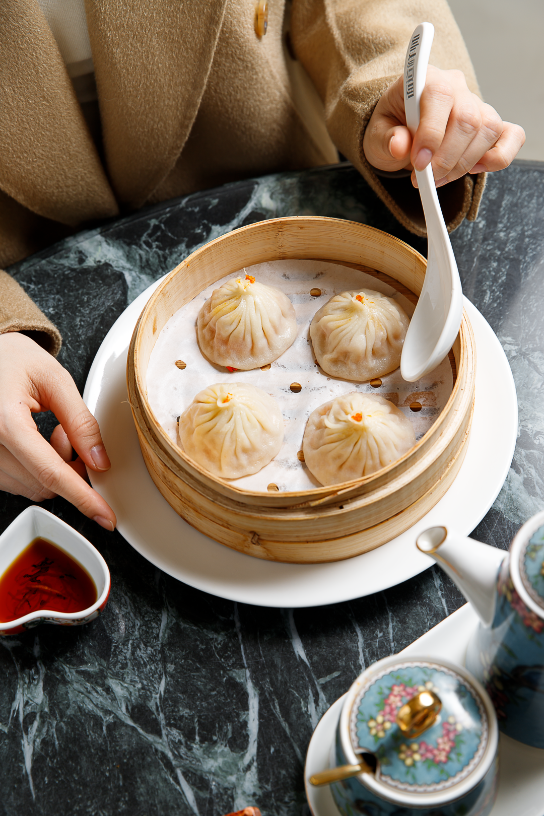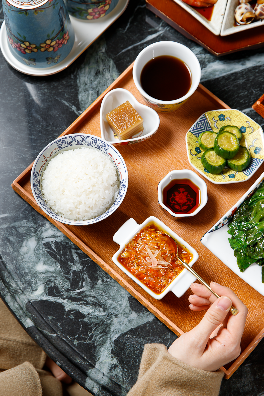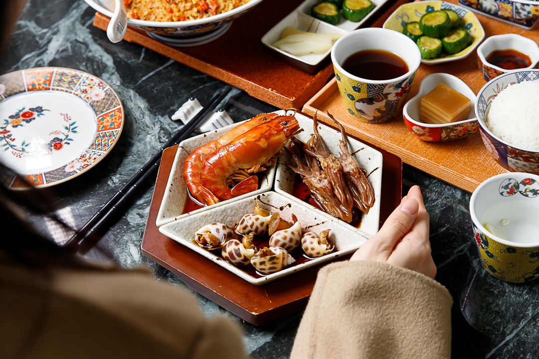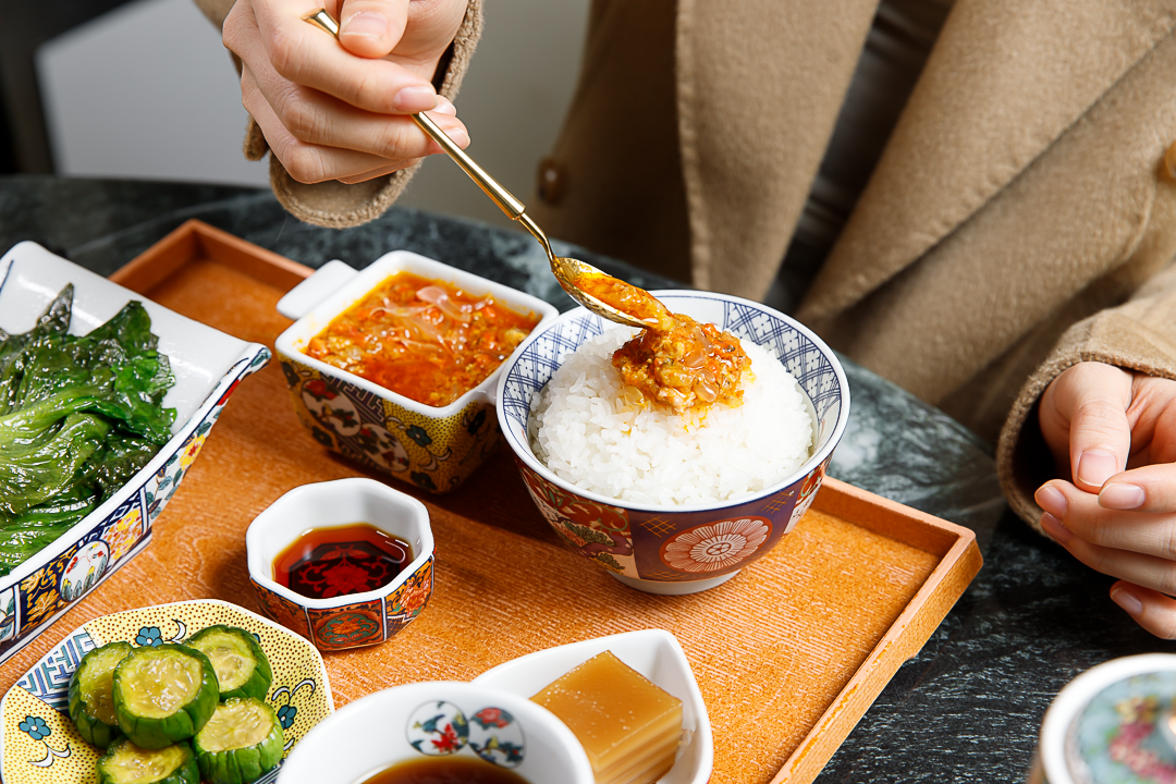 这一小碗拆了八只秃黄油。勺取一星半点,就能让平平无奇的白米饭拥有高光时刻。餐具和摆盘精致讲究,从细节处处透露出苏式料理的小资韵味。