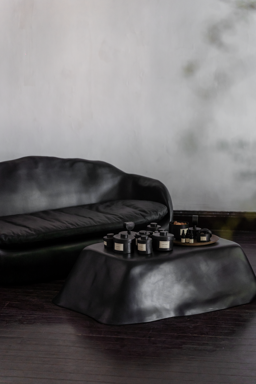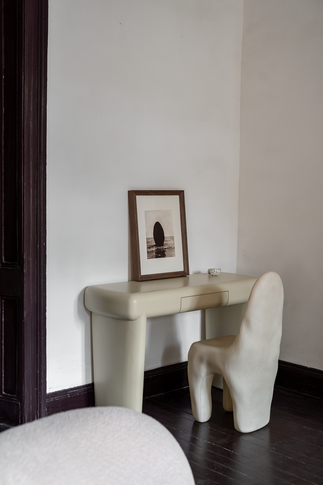 二楼的大厅则展示着kar的原创家具,土耳其颗粒绒面料的沙发、由黏土手工捏成的椅子、有着玉石质感的屏风……