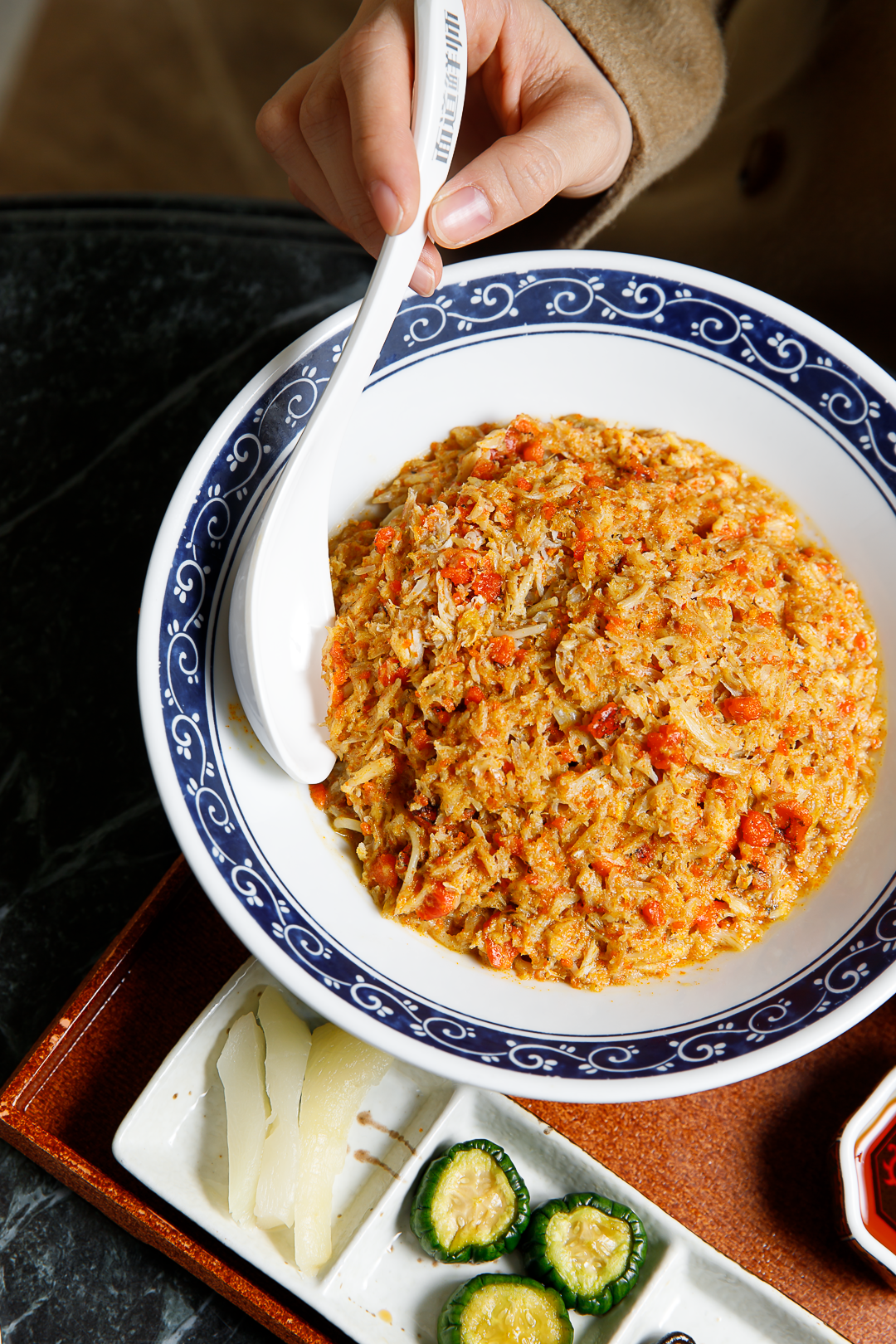 开在太古汇的面道鲜师是一家广州少见苏邦面馆。蟹粉料理是他们家主打,比如至尊秃黄油拌饭,这也是一道苏州传统名食。