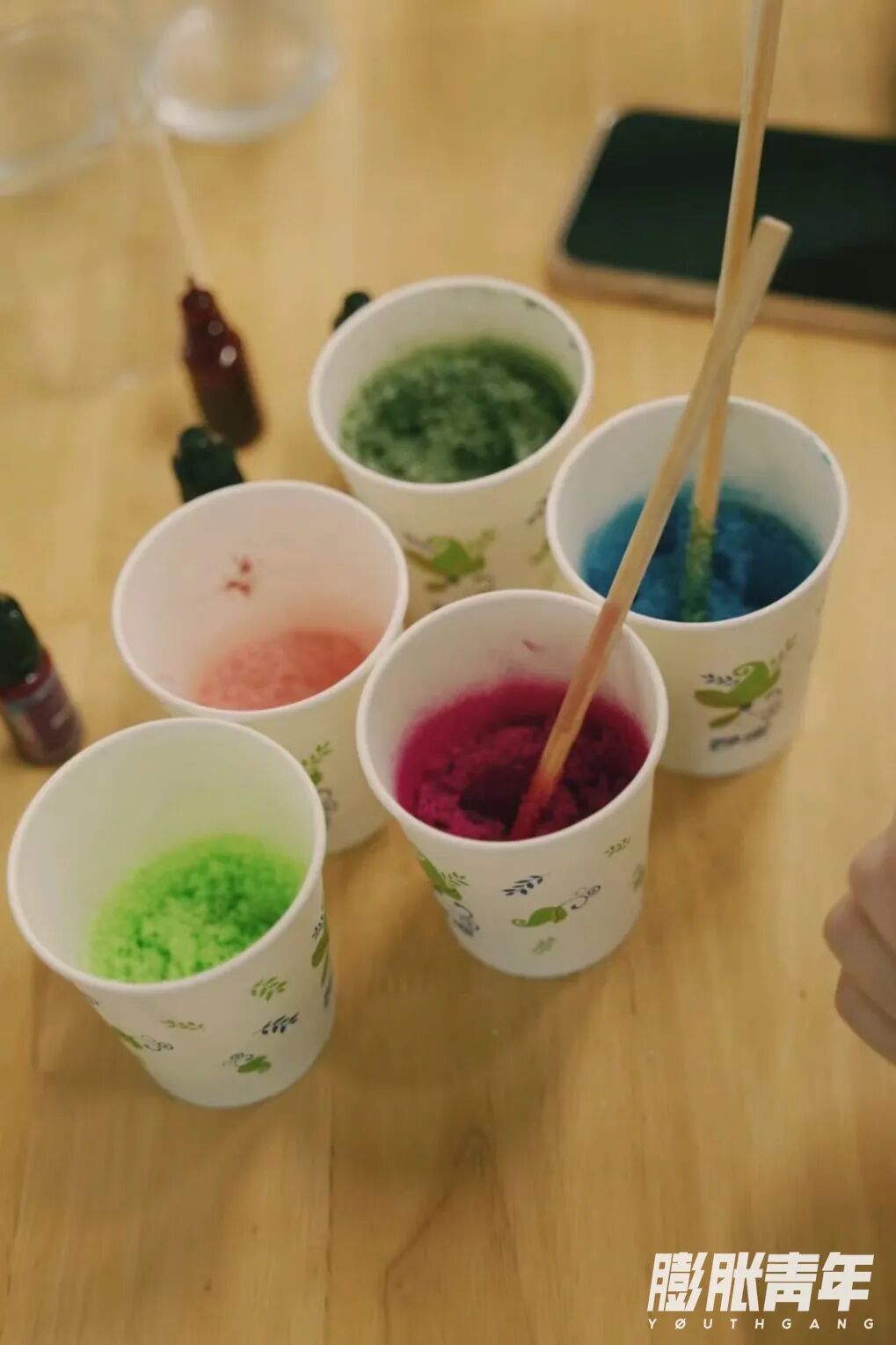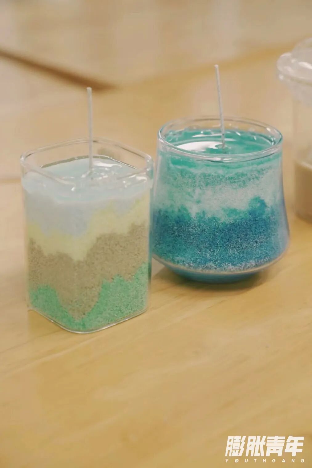 当不同颜色蜡烛原料混合在透明玻璃杯中时,那画面,真·艺术家来看了都得说句:“好家伙!”