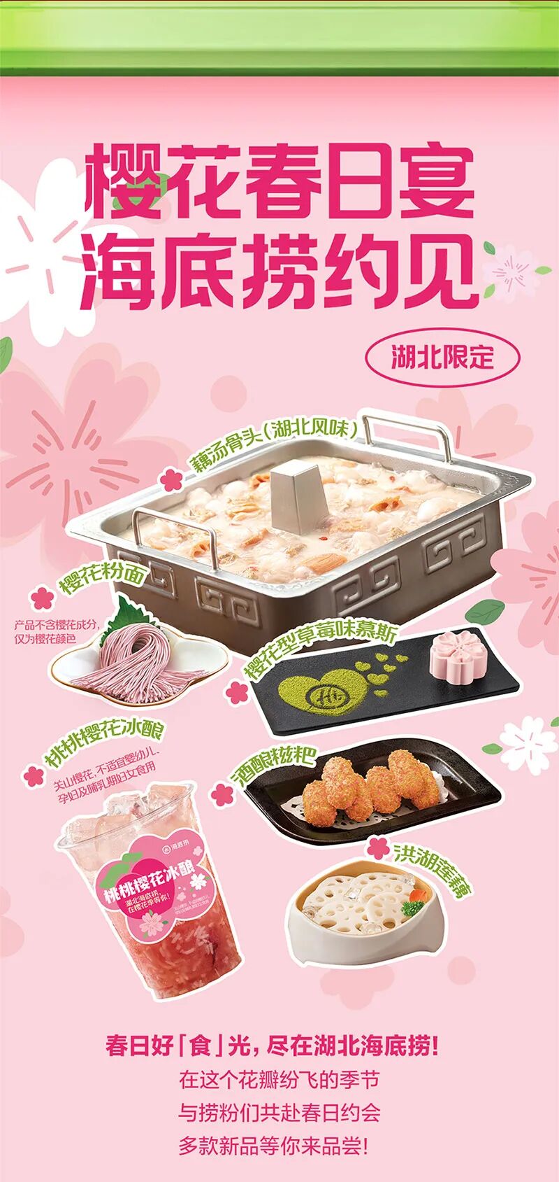 推荐:海底捞通过多个平级「点击展开」的交互方式介绍不同城市相应的春日新品和各地域门店推出的特色新菜,借此宣传海底捞火锅。