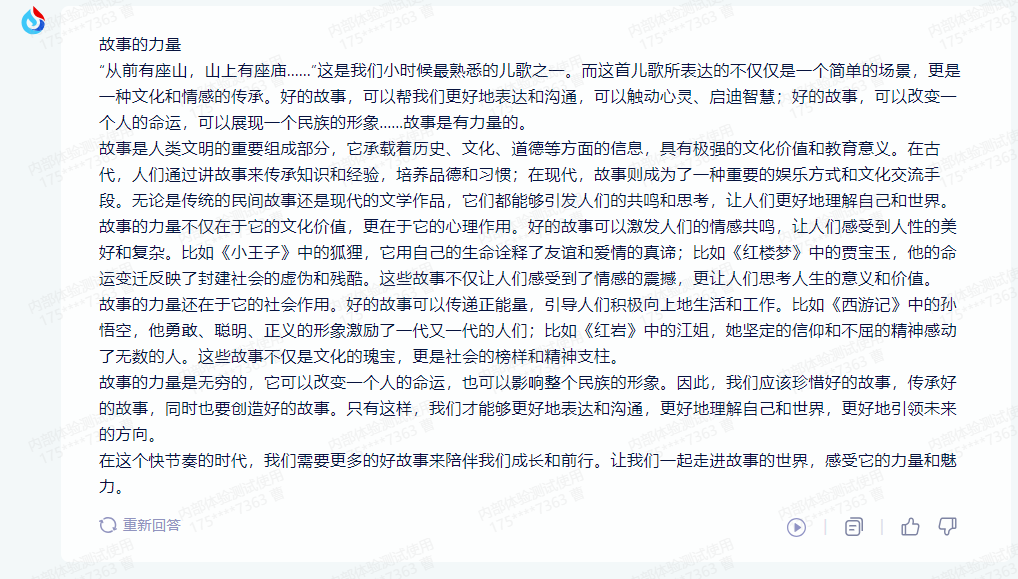 故事的力量无处不在,它可以在我们的生活中留下深刻的印记,也可以在我们的心灵中留下永恒的记忆。好的故事可以帮我们更好地表达和沟通,可以触动心灵、启迪智慧;好的故事可以改变一个人的命运,可以展现一个民族的形象。我们应该学会欣赏和传播好的故事,让它成为我们生活中的一部分。