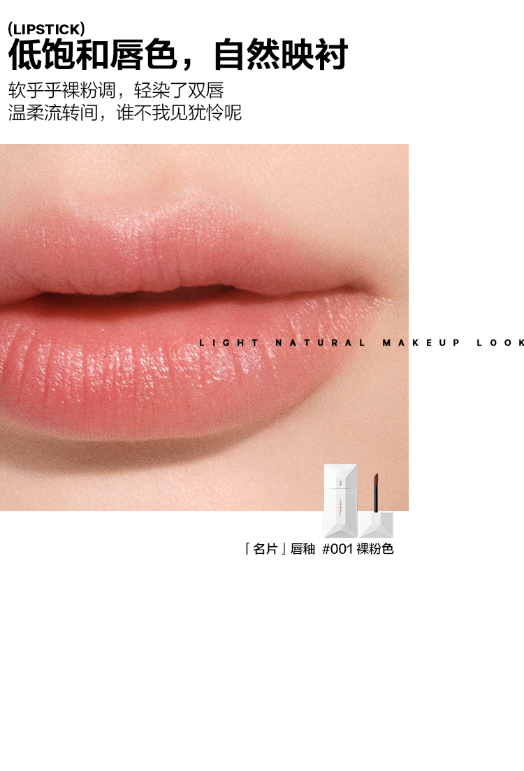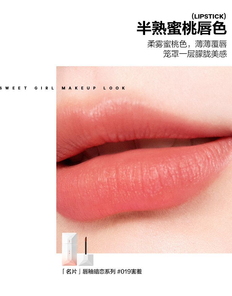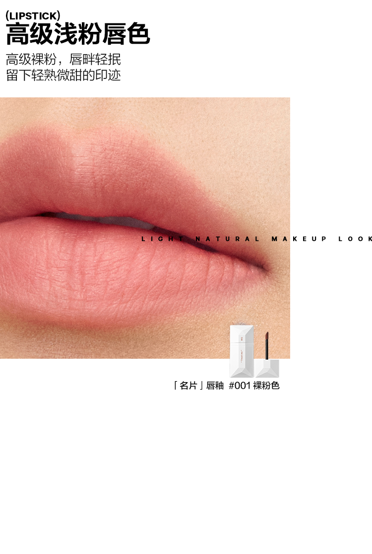 推荐:多个平级「点击展开」展示唇部位置呈现动态上妆效果,配合品牌柔雾渐变背景提升沉浸感,借此宣传完美日记系列口红色系。