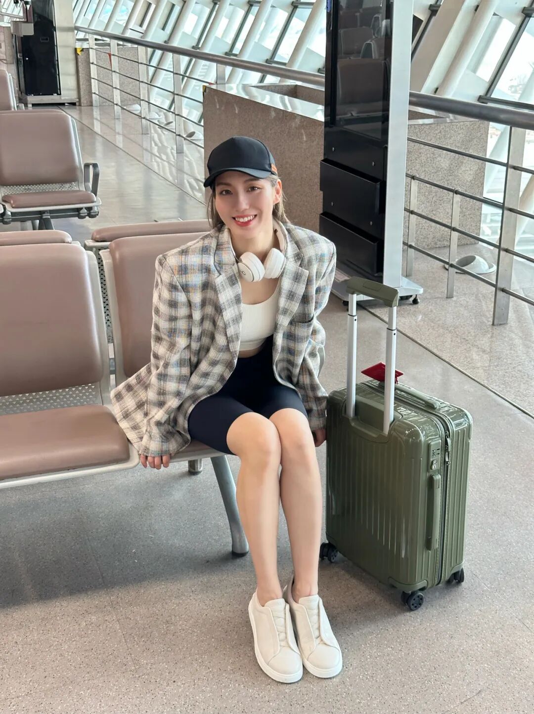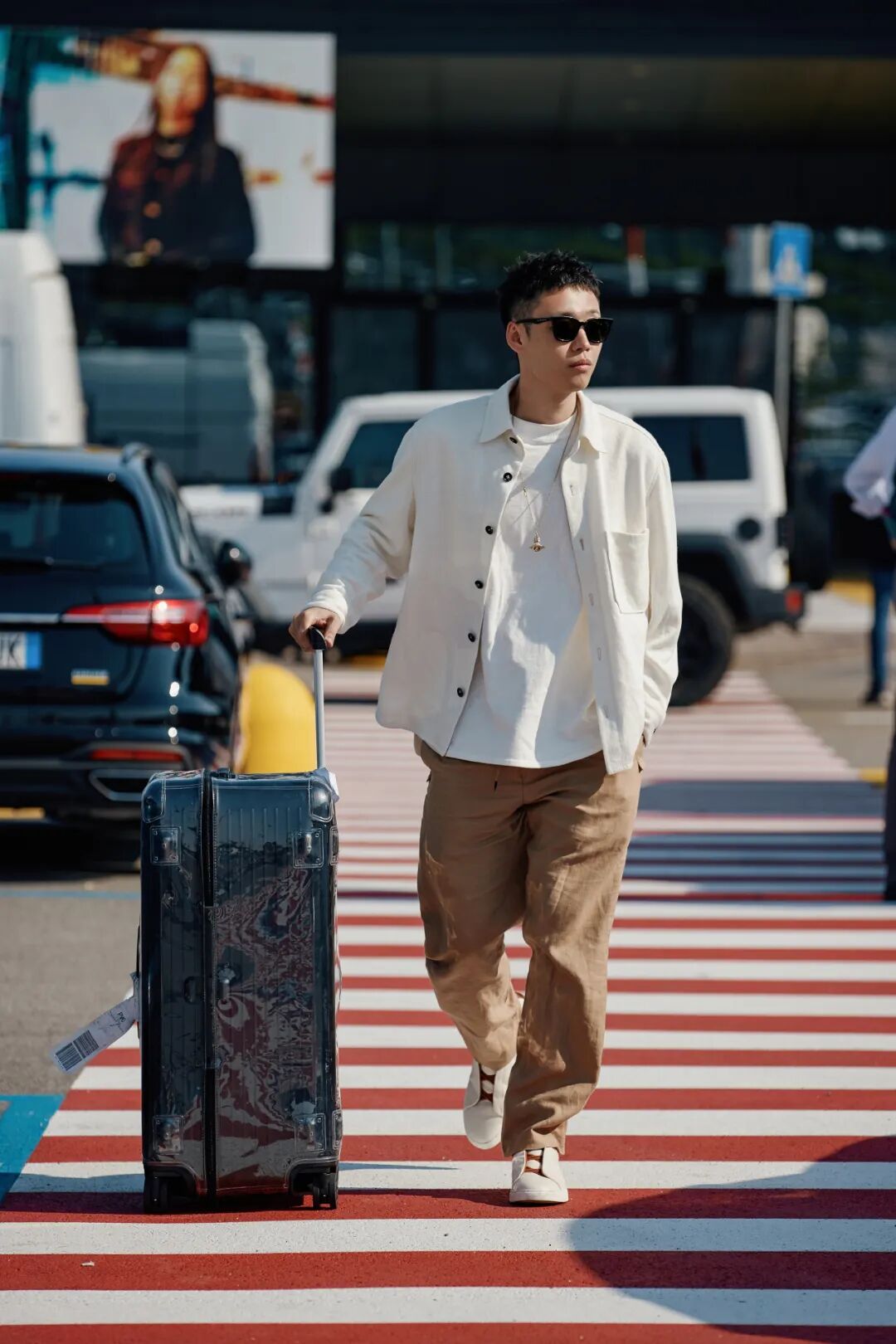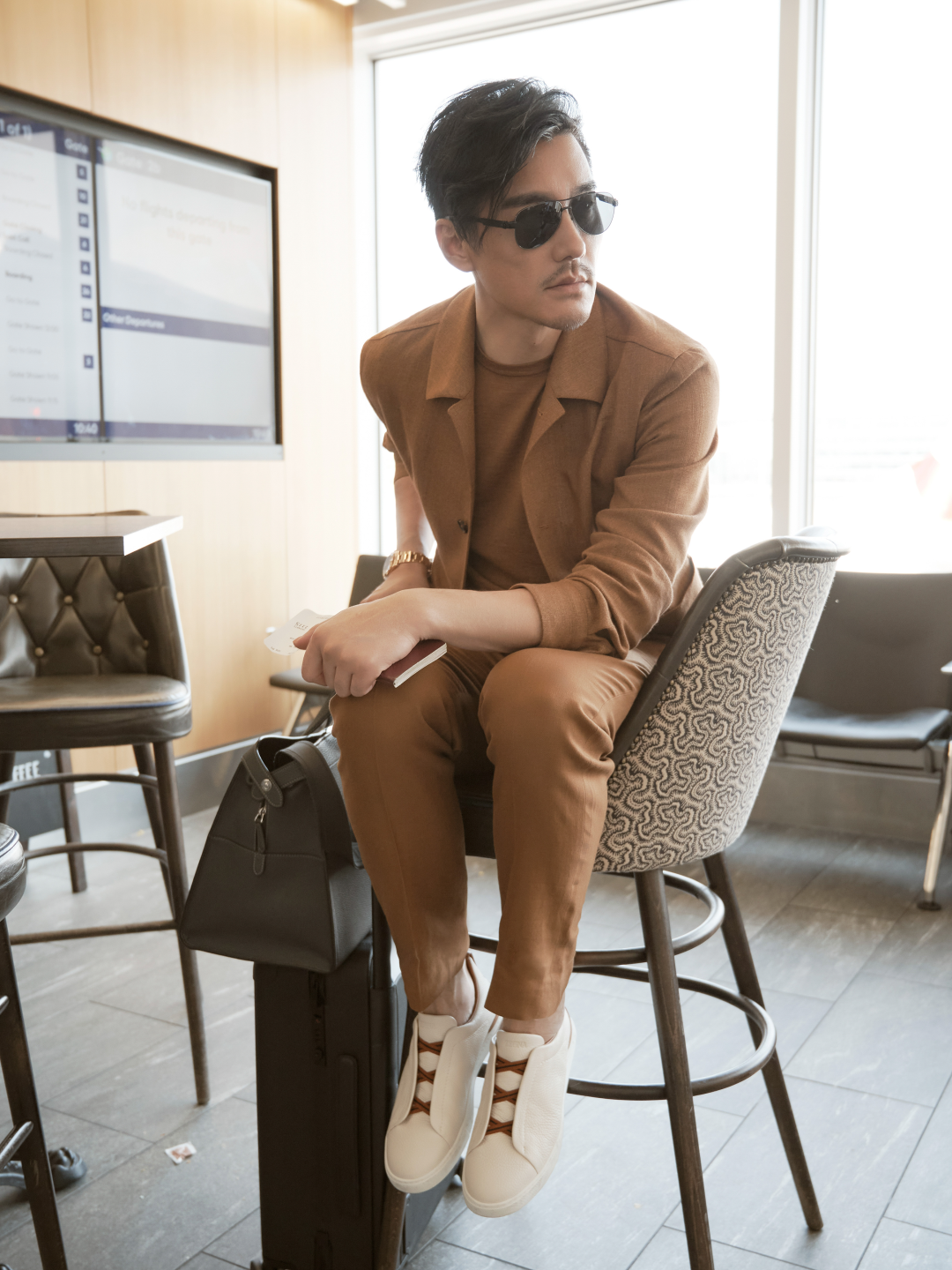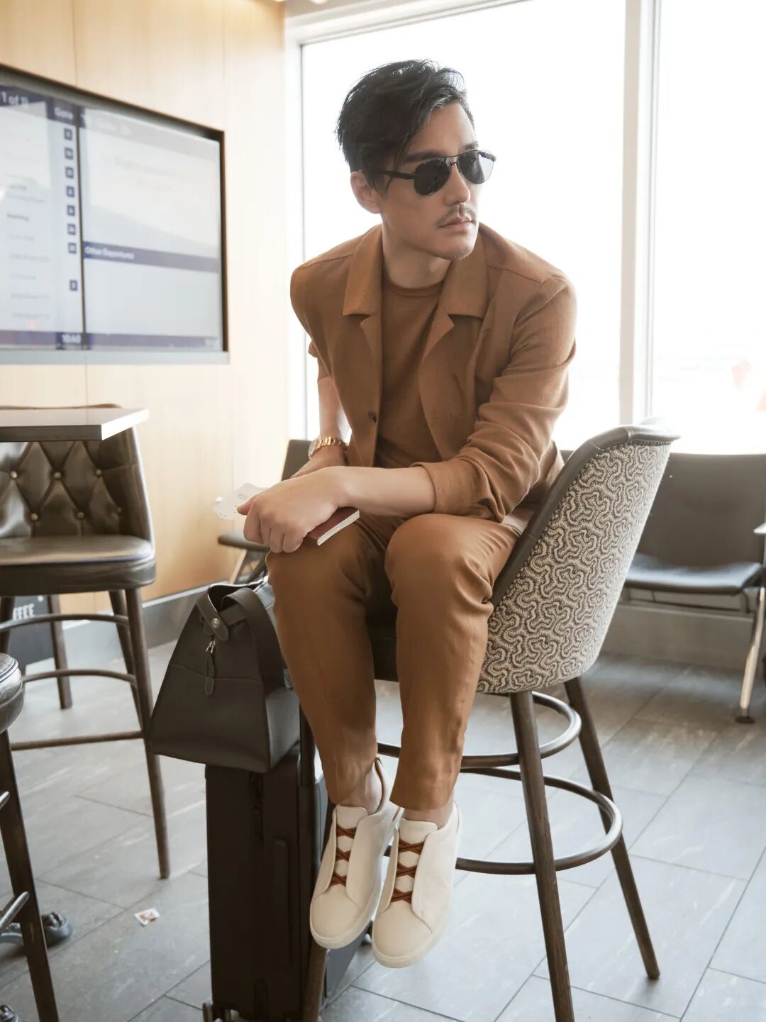 伦敦时装周的全球代言人胡兵在伦敦机场穿的就是米白色Triple Stitch™奢华休闲鞋,中国飞伦敦,十几个小时的长途,既要保证时髦有型又要真的很舒服,就很需要这种一脚蹬就能走的鞋子,而且这双还搭配了棕色鞋带的设计,和整体的棕色造型呼应,很有质感。