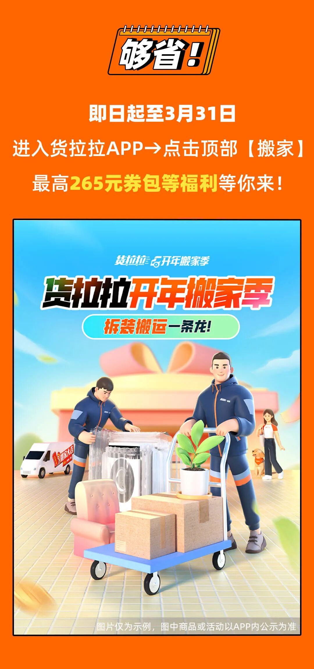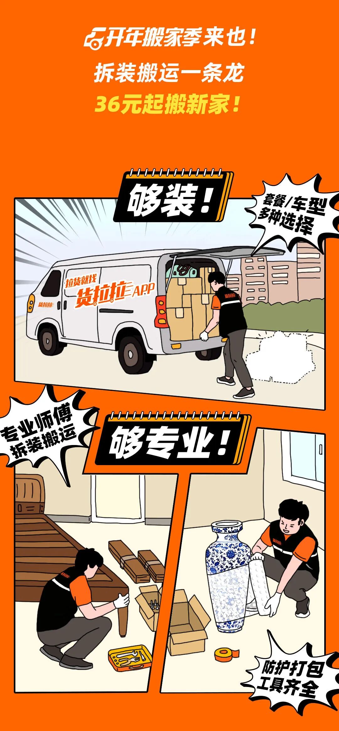 推荐:多个平级「点击伸缩式展开」货拉拉的开年搬家季活动,该活动提供拆装搬运一条龙服务,借此宣传货拉拉。