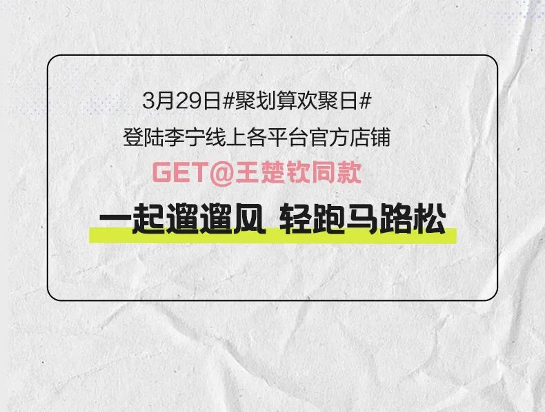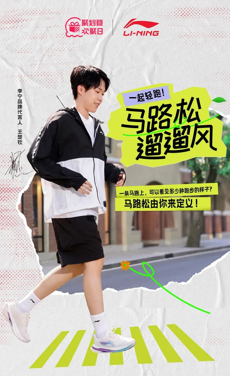 推荐:「点击消失后展开」联合李宁推出的 “马路松 遛遛风” 活动介绍,重点介绍了王楚钦同款运动装备,借此宣传聚划算欢聚日活动。
