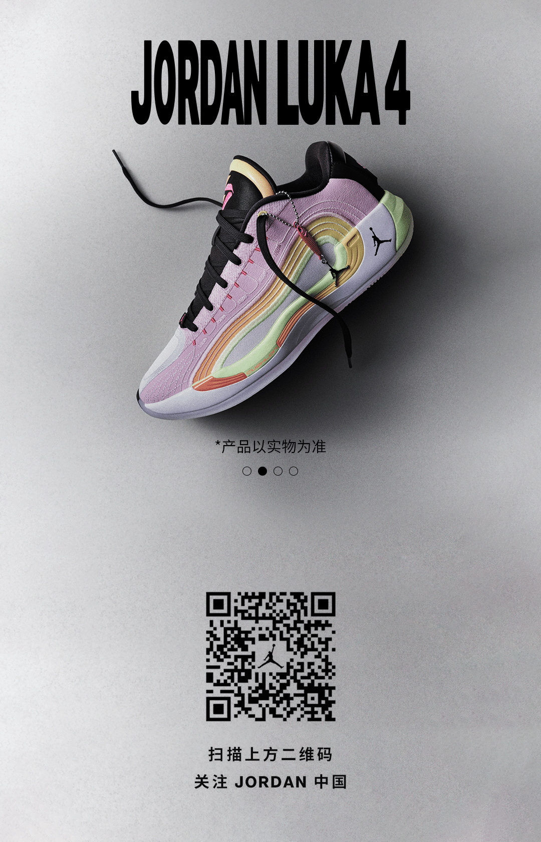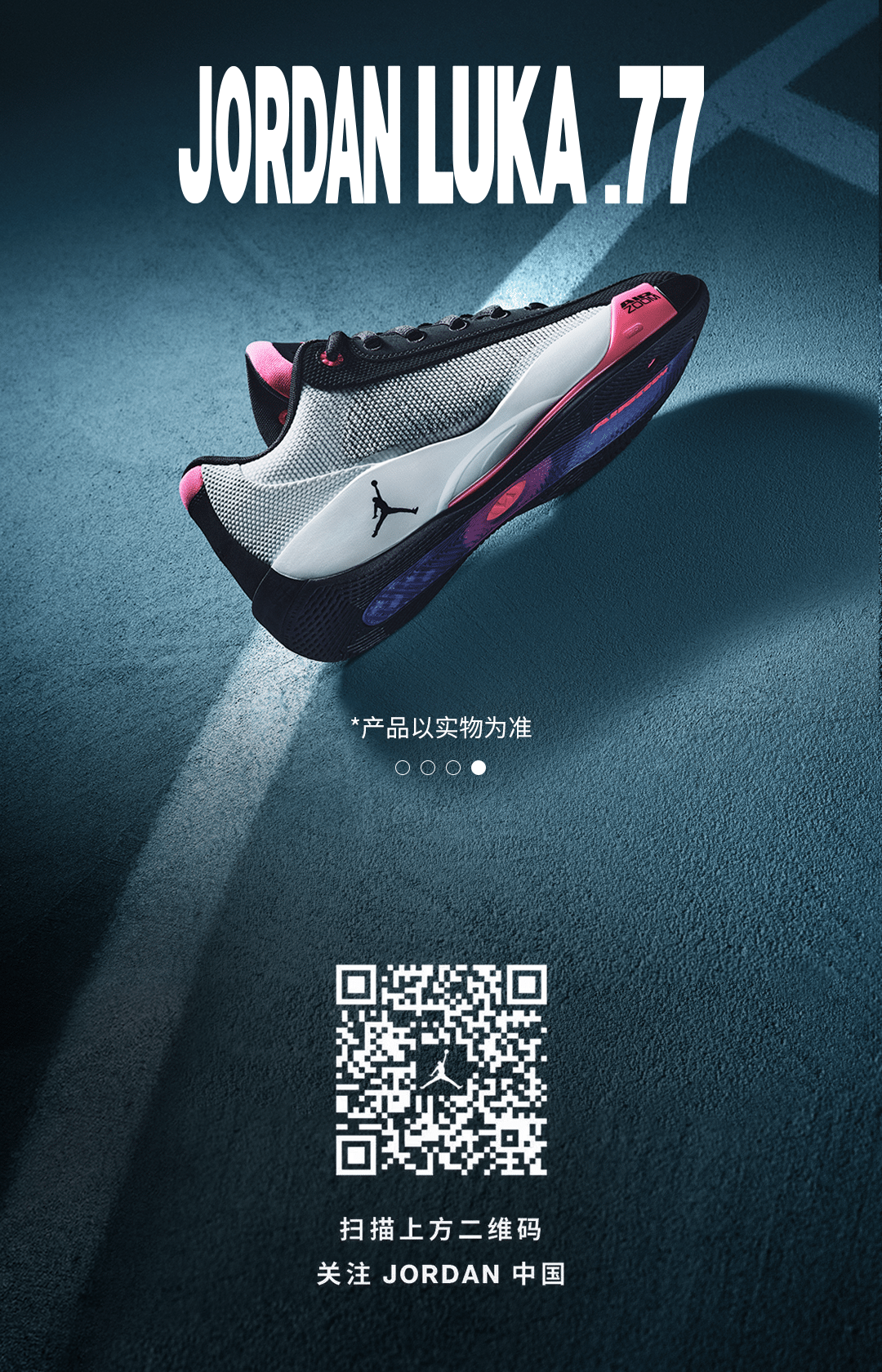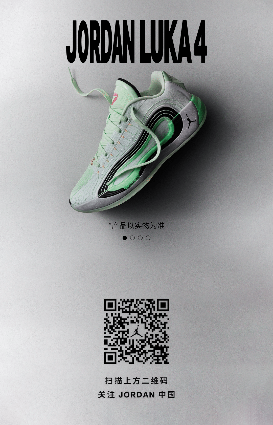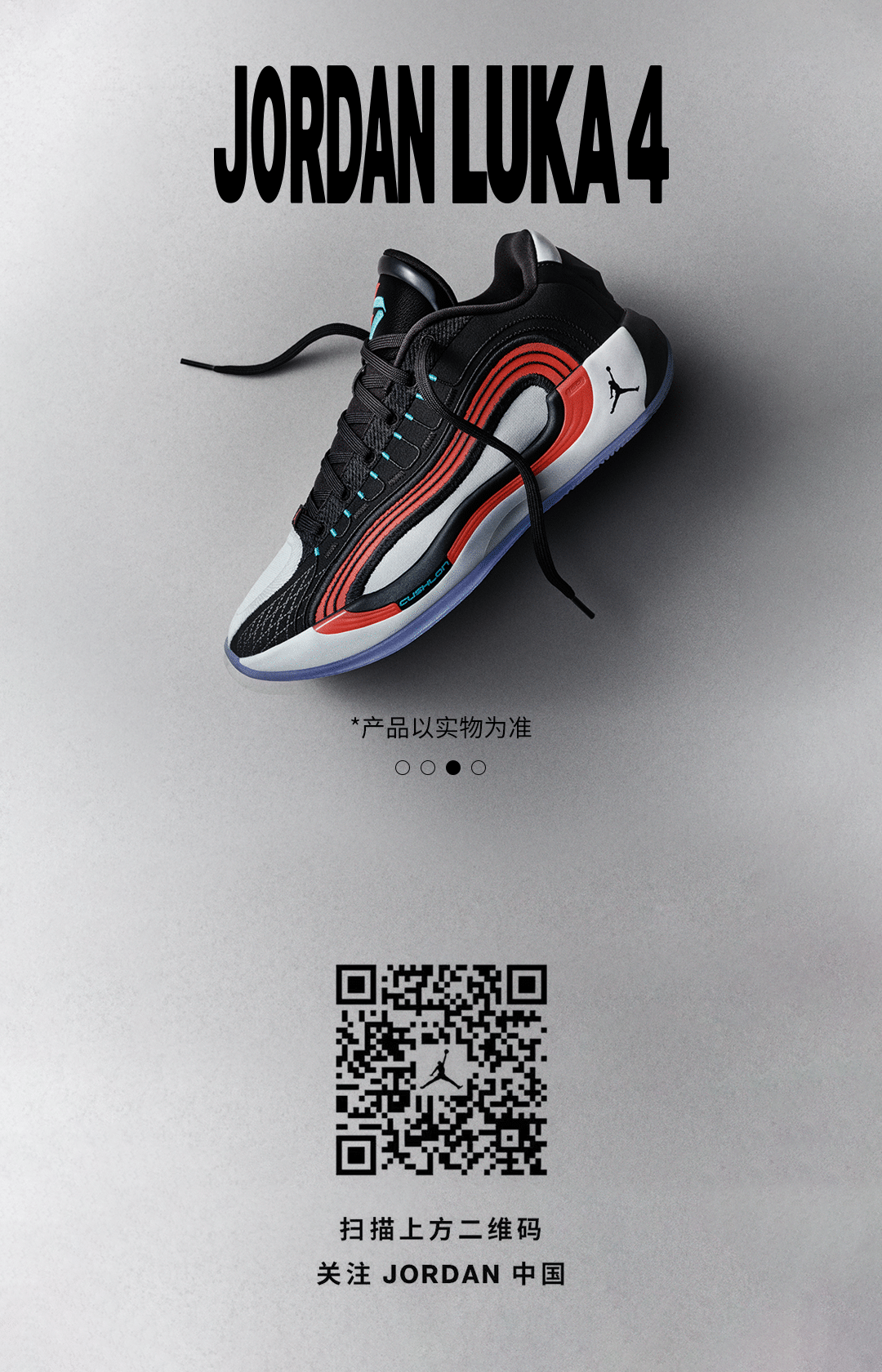 推荐:「视差上滑」展示 JORDAN LUKA4 产品图片,吸引读者读者扫描二维码关注 JORDAN 中国,借此宣传Jordan中国。