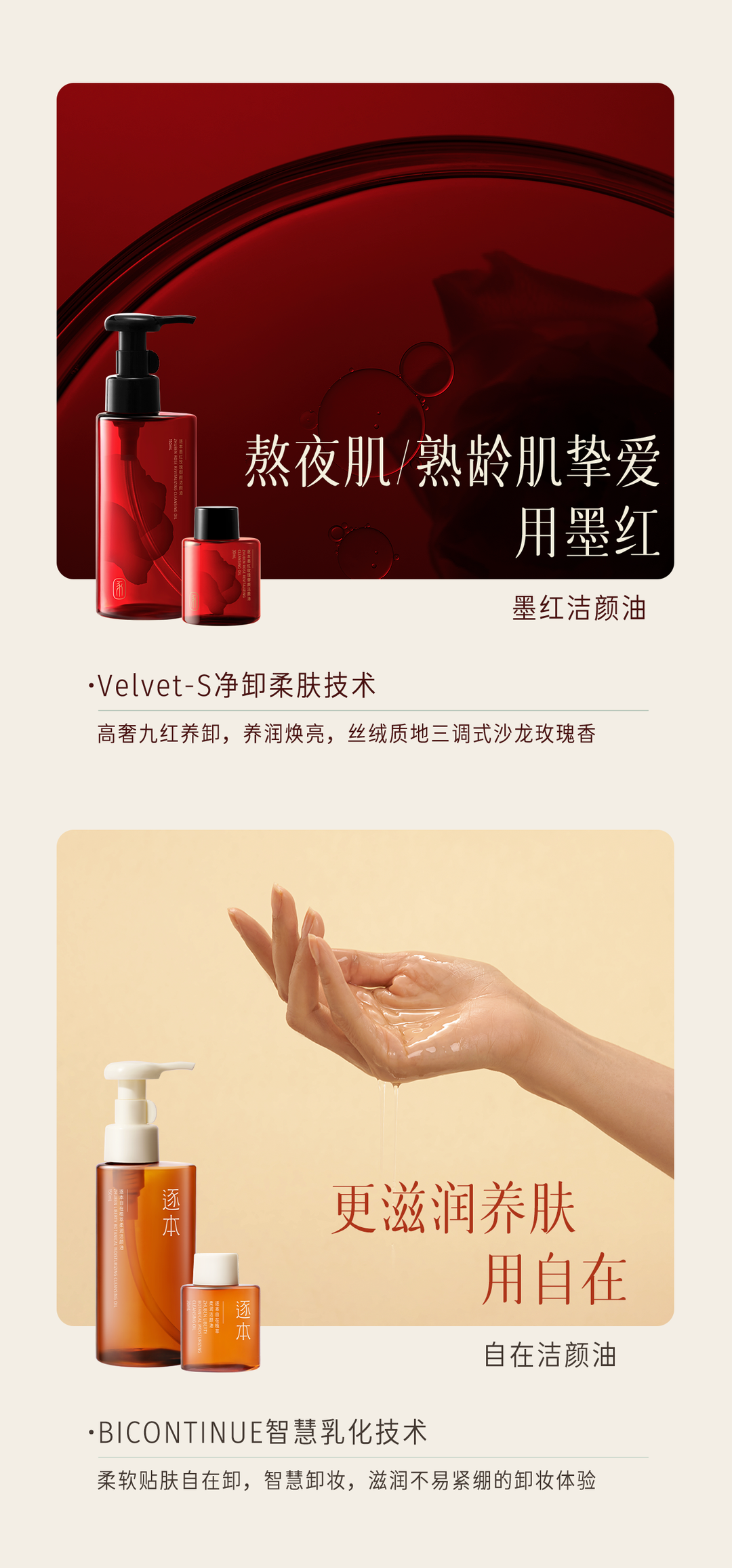 推荐:「点击展开」选择你的肤质,介绍逐本的各款护肤品以及功效,借此宣传逐本。