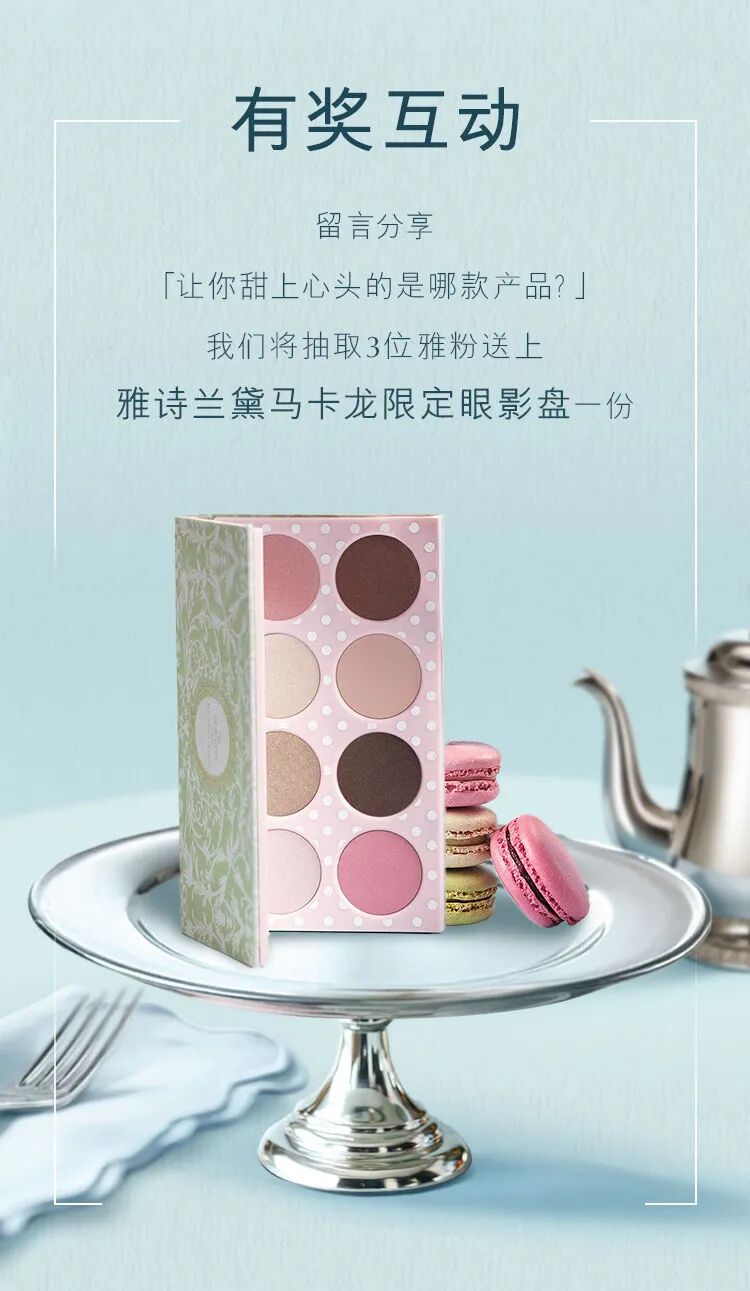 推荐:「点击消失后展开」伴随马卡龙「遮罩」落下,给大家带来雅诗兰黛马卡龙限定彩妆的介绍,「左滑」展示更多色号,最后吸引大家购入礼盒。