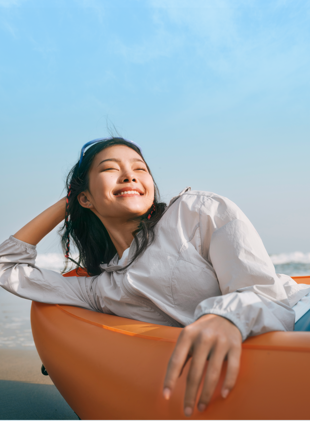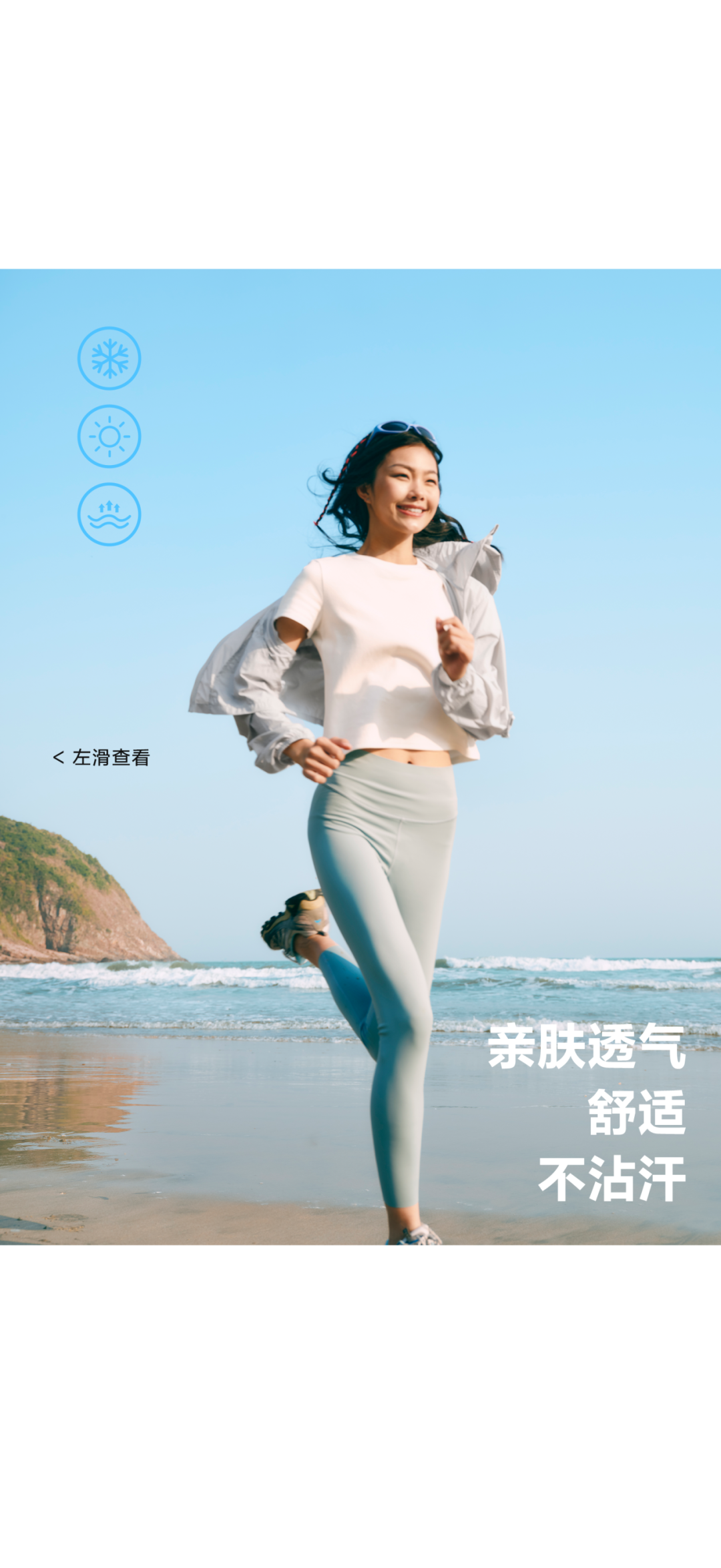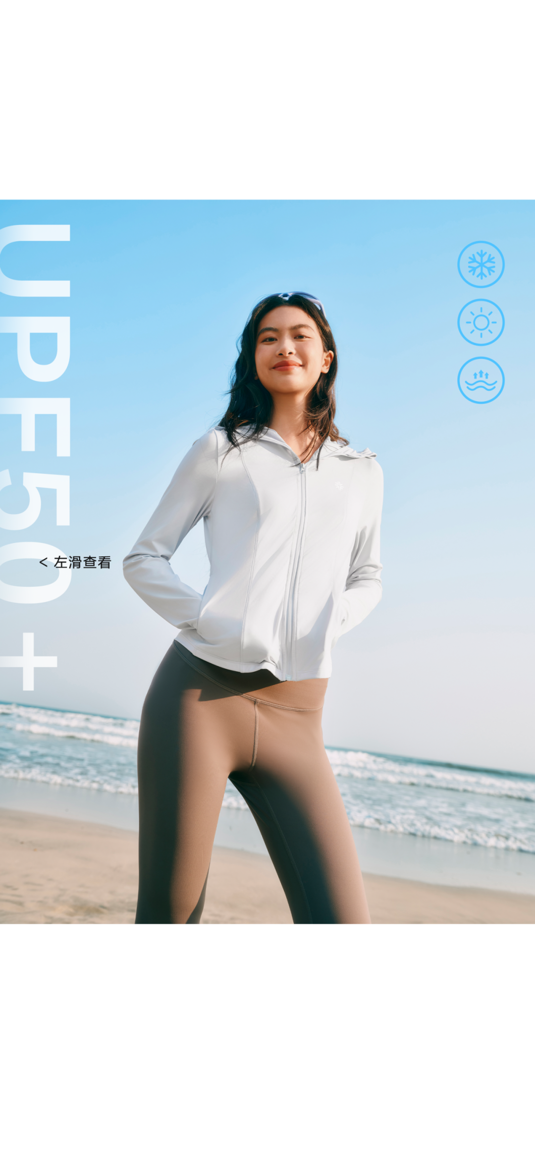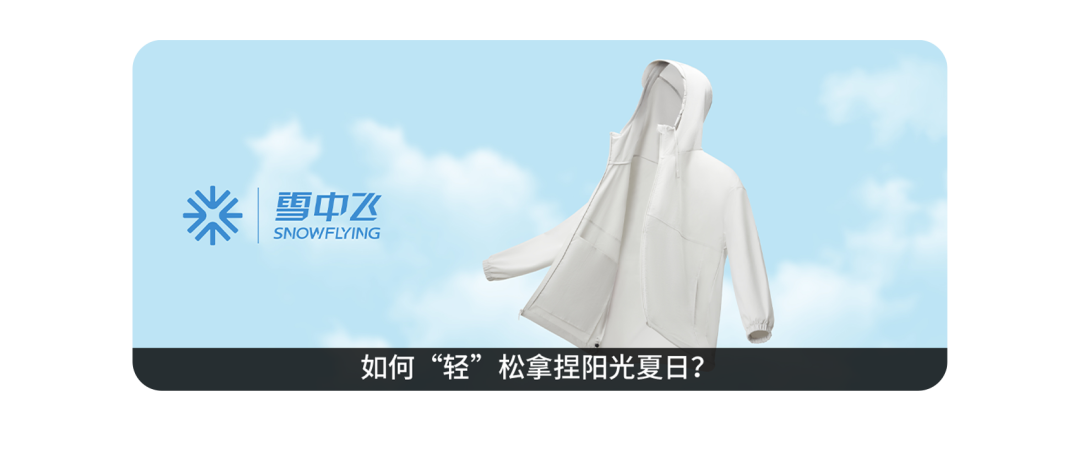 推荐:多个平级「点击左移后展开」介绍雪中飞夏日防晒服饰,以及科技面料与时尚设计,引导消费者选购。