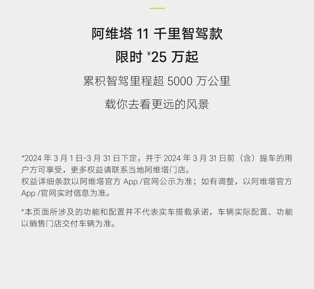 阿维塔 11 千里智驾款,限时 25 万元起
