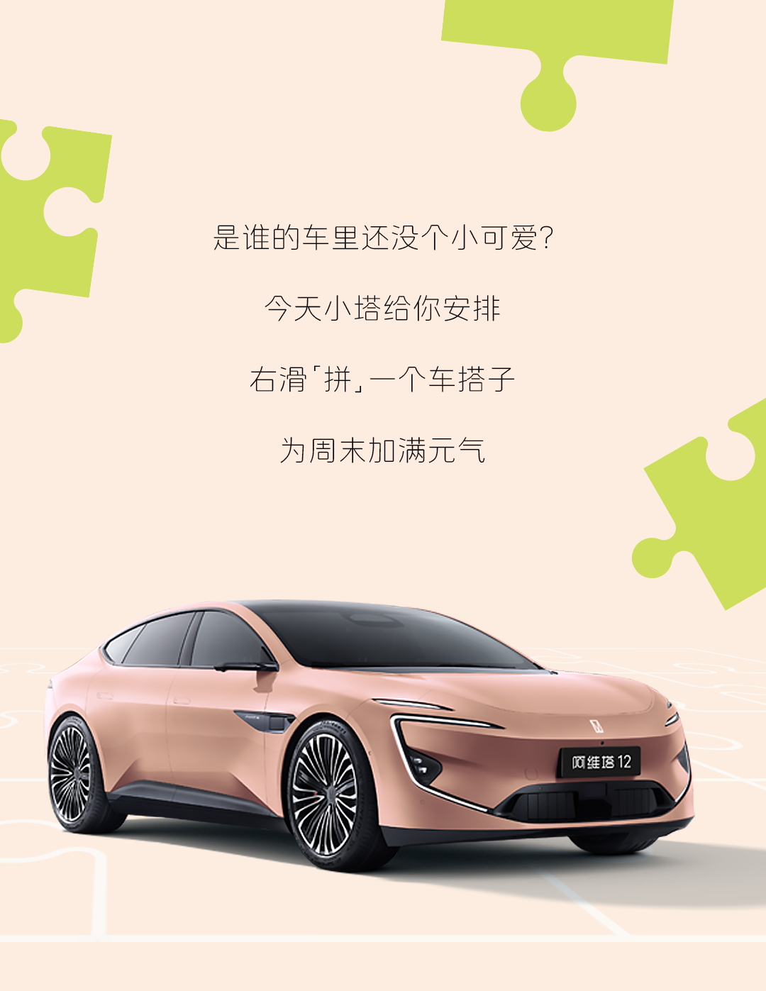 推荐:「右滑」模拟拼图,引出车搭子的话题,邀请用户在评论区秀出自己的车搭子,借此宣传阿维塔汽车。