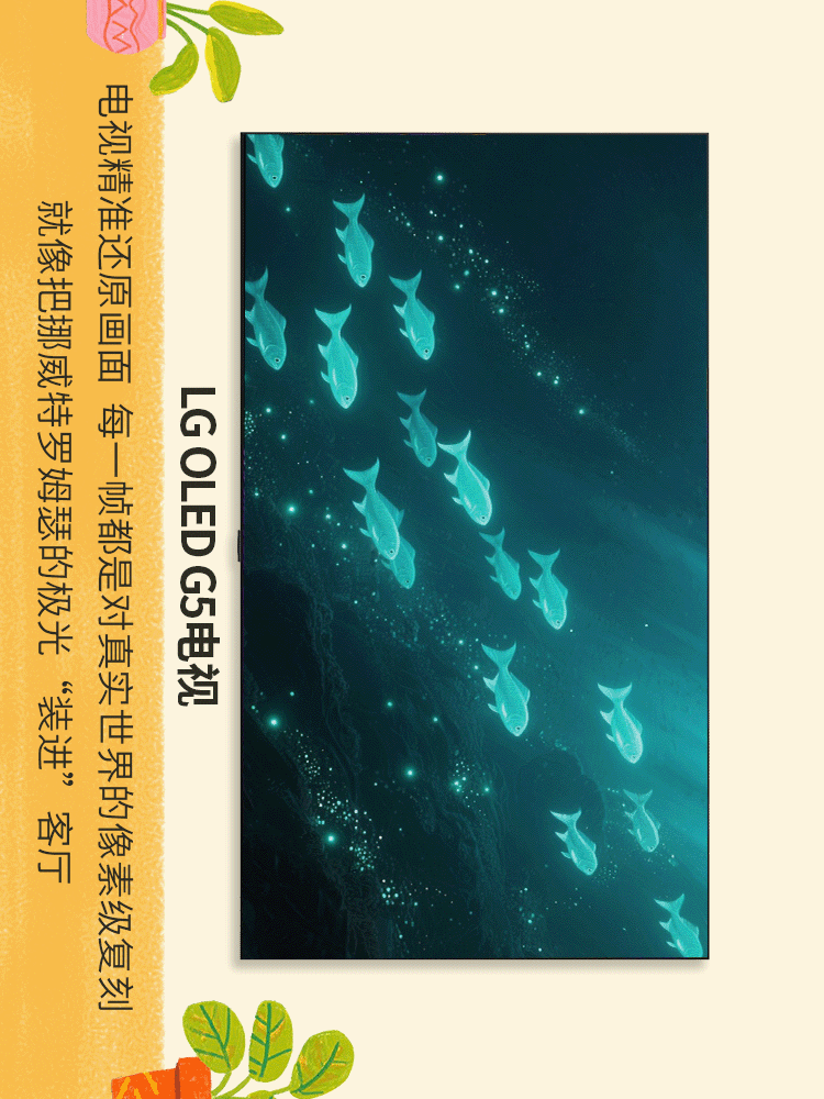 推荐:「点击切换GIF动图后展开」以夏至为时间切入点,通过家庭观影场景与极光意象的结合,突出 LG OLED G5 电视在画质、智能优化及音效方面的优势,借此宣传LG电子产品。