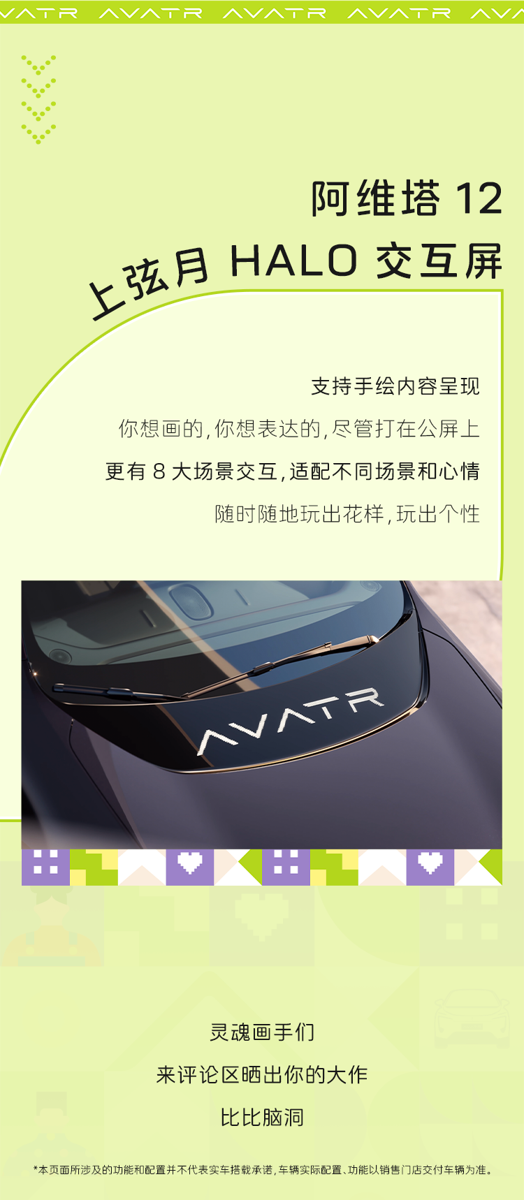 推荐:「点击展开」介绍阿维塔 12 的上弦月 HALO 交互屏,「点击切换」方块进行创作,借此宣传阿维塔 12汽车。