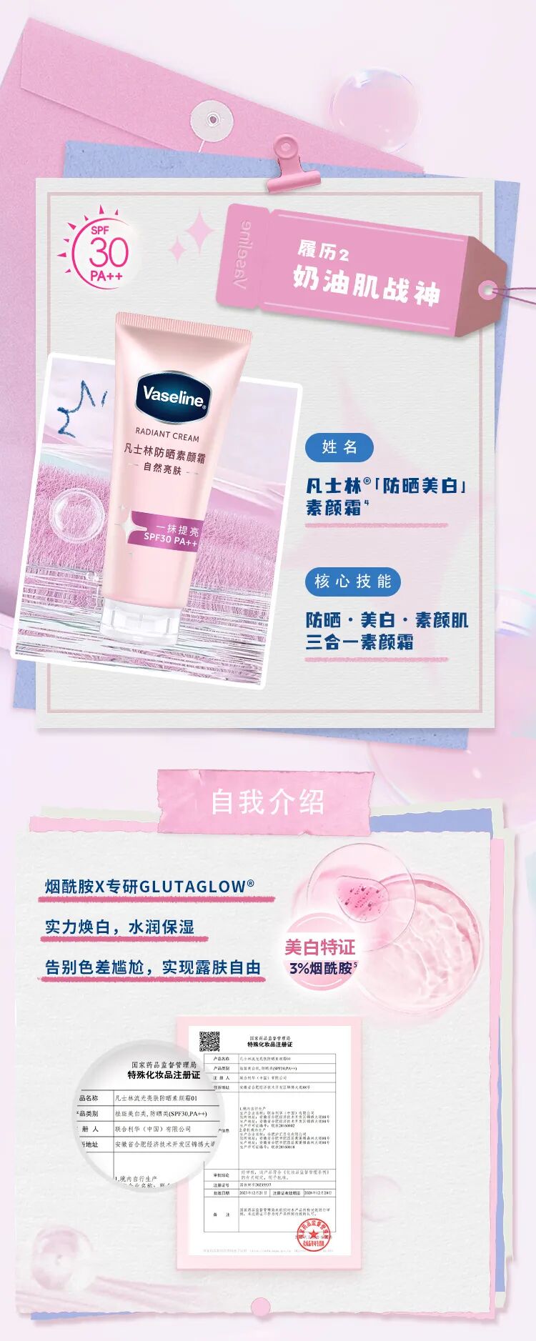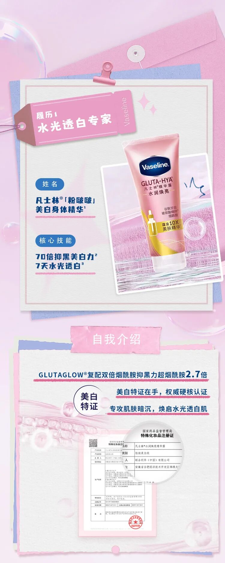 推荐:「点击展开」凡士林在渝设快闪街区和相关产品的介绍,推美白产品,借此宣传凡士林美白产品。