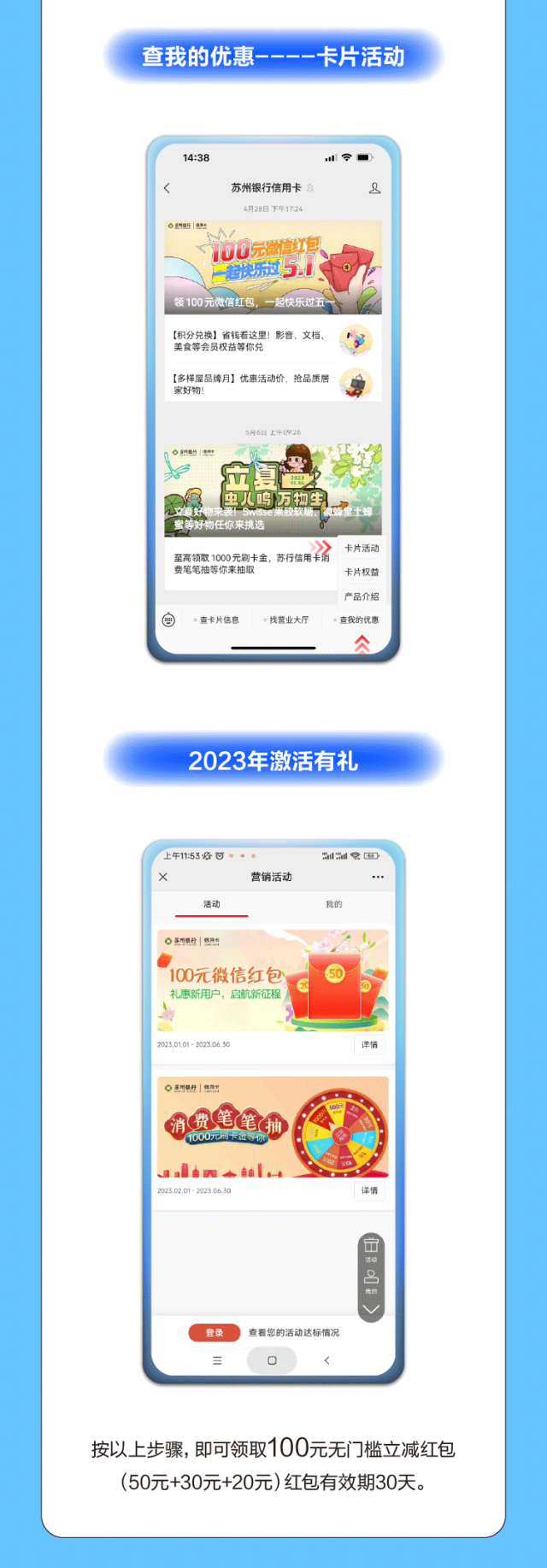 推荐:「背景左滑」针对未激活信用卡的新持卡者推出活动,借此宣传苏州银行信用卡,吸引读者前往办理。