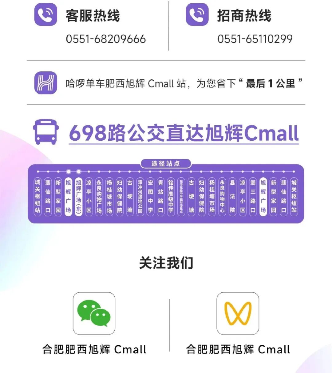 文章内容来源于公众号:合肥肥西旭辉Cmall 点此可查看原文。若涉及版权问题或存在侵权情况,请及时与我们联系,我们将第一时间进行删除处理。
