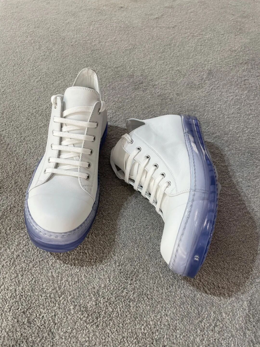 Rick Owens是设计师同名品牌,极简主义的色彩运用和摇滚施客味道的不对称层叠设计是瑞克·欧文斯的招牌设计。这款鞋子采用流行的透明鞋底,舒适又具有设计感,值得添置到自己的鞋柜。