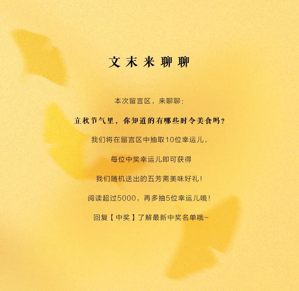 二十四节令丨今日立秋,秋季的第一个节气,与你共品秋食共话秋事!(文末福利)