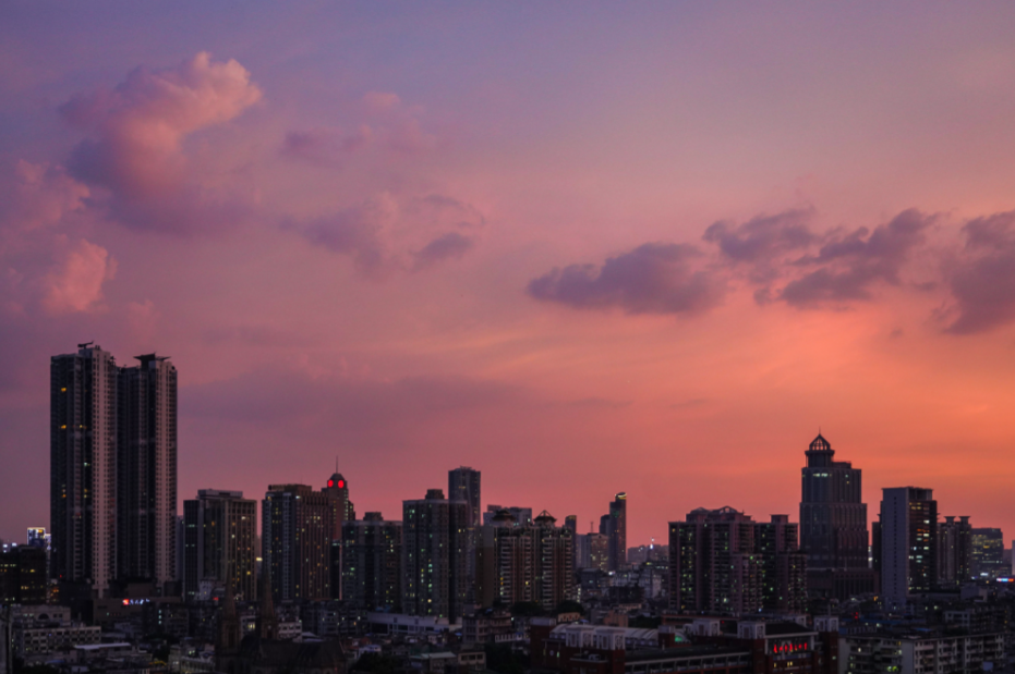 8月5日傍晚,广州的天空红霞漫天,高温不减。图/广州日报新花城记者:吴子良