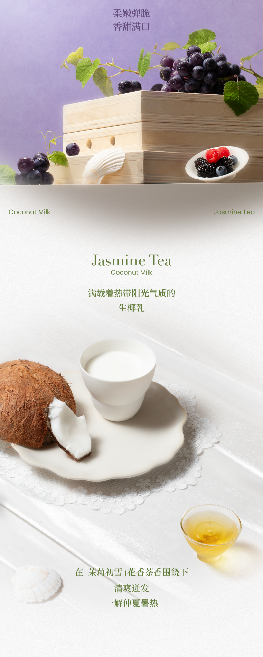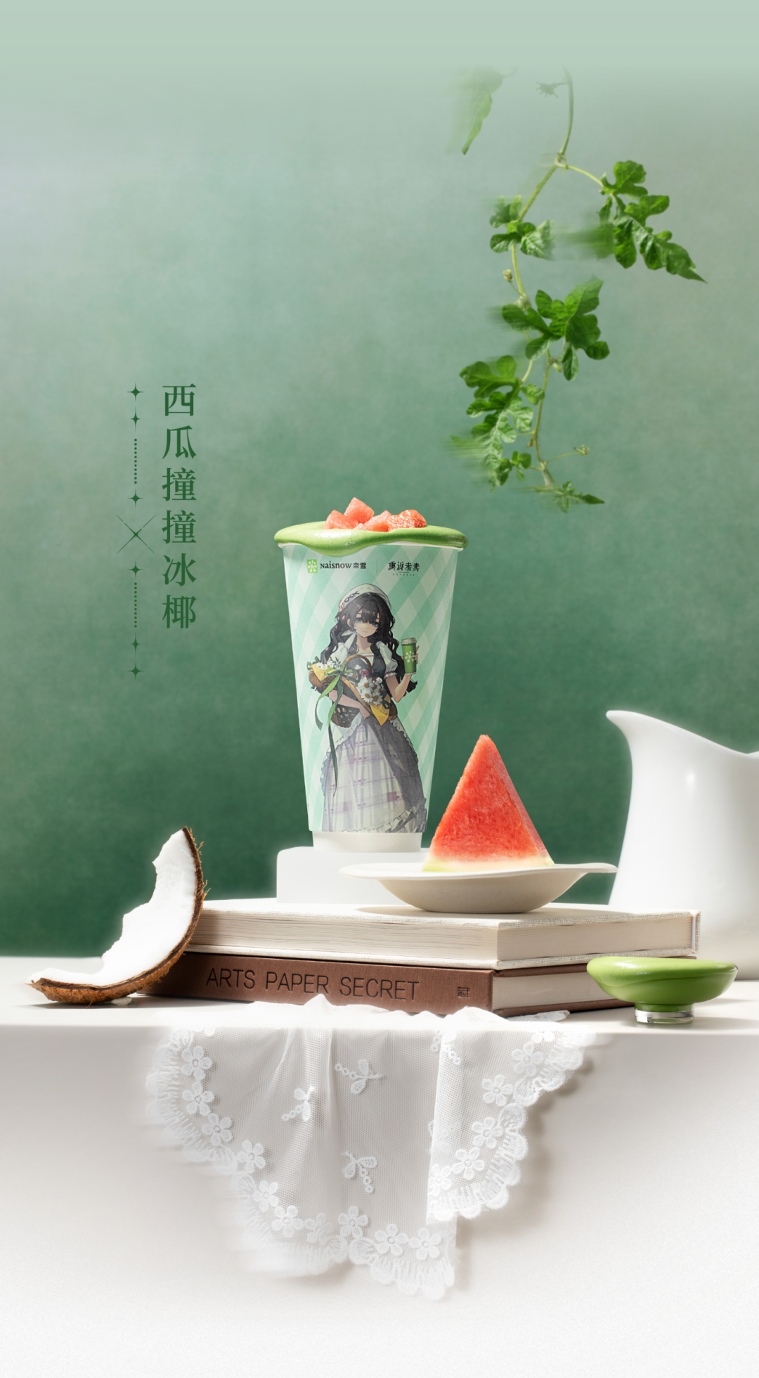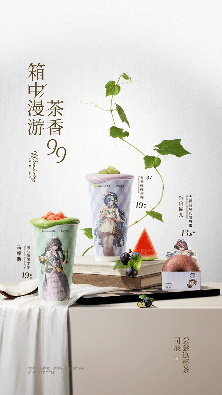 推荐:「点击切换GIF后展开」推出葡萄撞撞冰椰、西瓜撞撞冰椰两款饮品及大颗蓝莓乳酪贝果,并搭配联名主题包材与特典周边,吸引读者前往购买