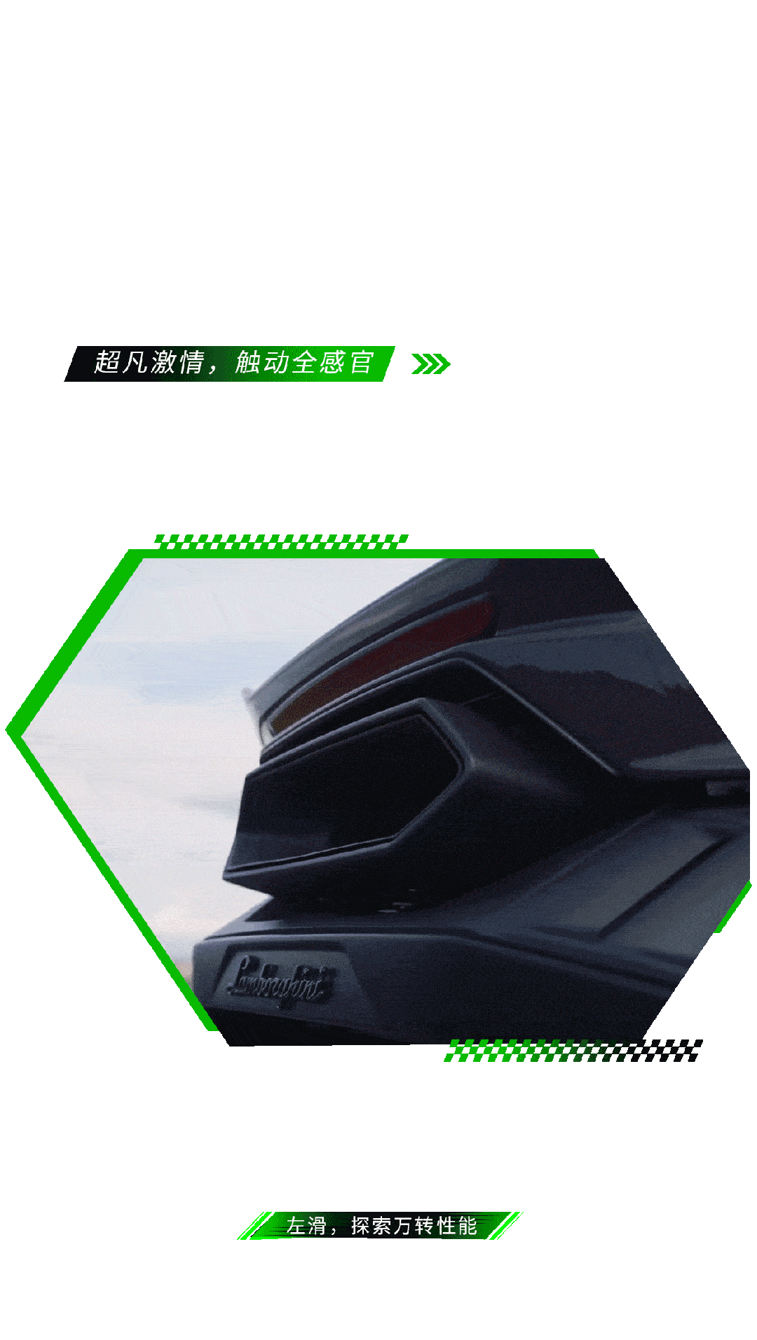 推荐:兰博基尼汽车通过「点击切换后展开」的交互展示汽车的性能,同时播放让人热血沸腾的引擎背景音,多个平级「左滑」探索万转性能,吸引大家试驾并购买。
