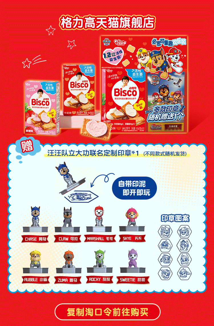 37¥IZAO4jbprEf¥ https://m.tb.cn/h.hskhtYe CZ057 格力高必思可汪汪队欢乐装赠印章