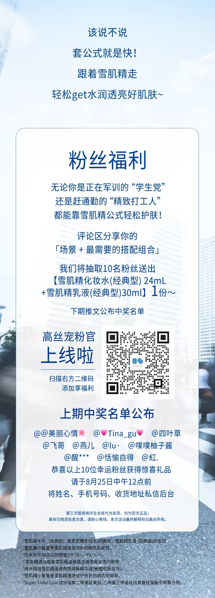 文章内容来源于公众号:高丝KOSE 点此可查看原文。若涉及版权问题或存在侵权情况,请及时与我们联系,我们将第一时间进行删除处理。