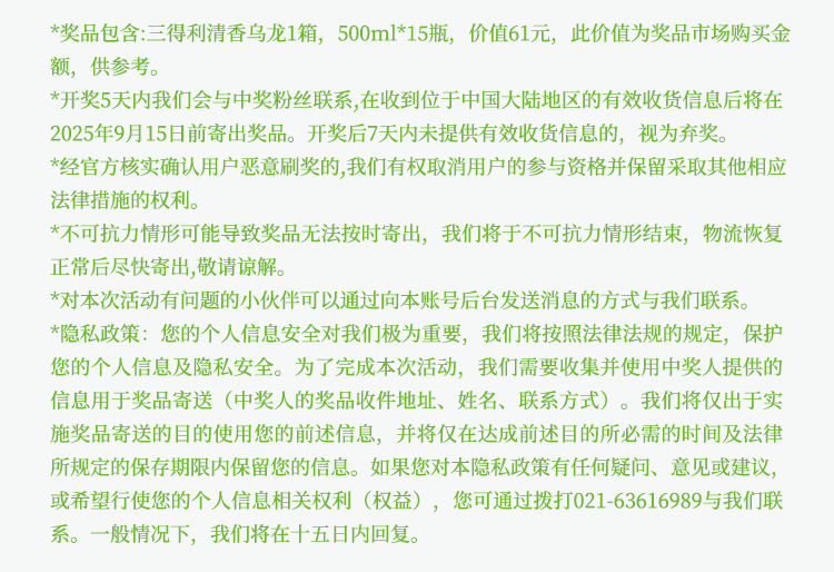 文章内容来源于公众号:三得利饮料 点此可查看原文。若涉及版权问题或存在侵权情况,请及时与我们联系,我们将第一时间进行删除处理。