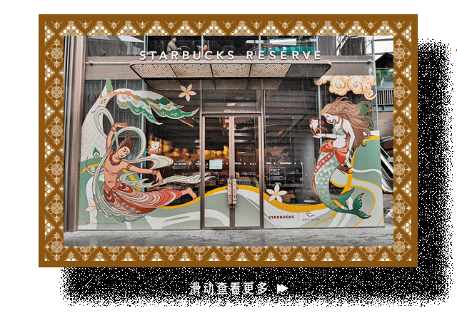 推荐:「点击切换后展开」展示敦煌美术研究所联名商品,「视差上滑」展示更多敦煌素材,「左滑」带大家看更多敦煌市首家星巴克,吸引大家打卡。