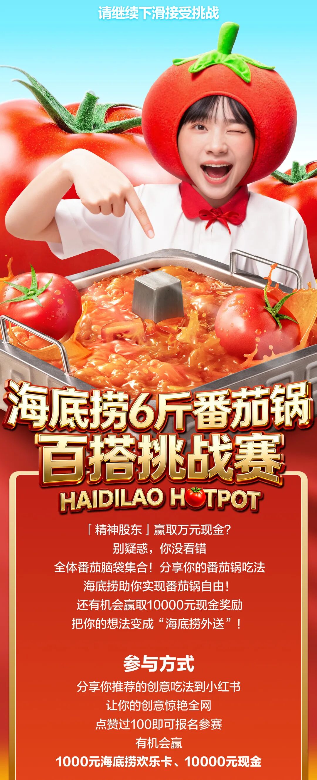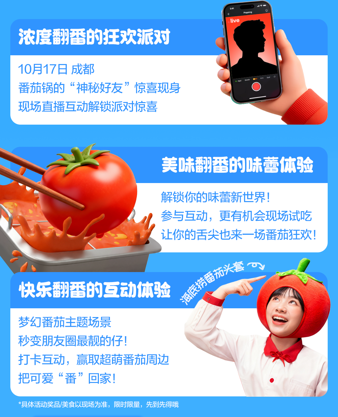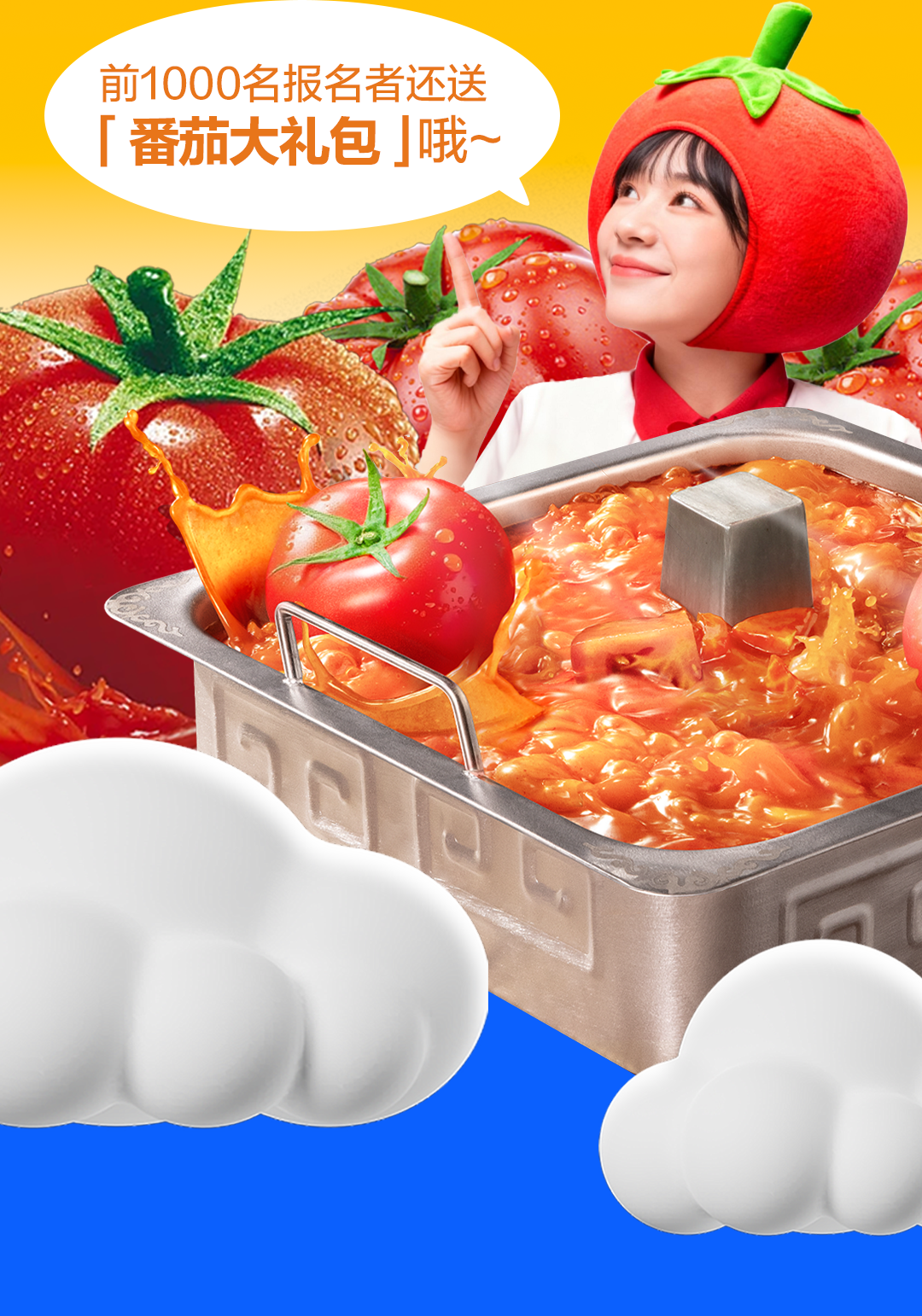 推荐:「点击切换GIF后消失展开」围绕 “创意吃法征集”“线下番茄锅迷派对”“多平台直播” 三大板块展开,同步设置线上留言互动福利,吸引用户关注并参与番茄锅相关活动。