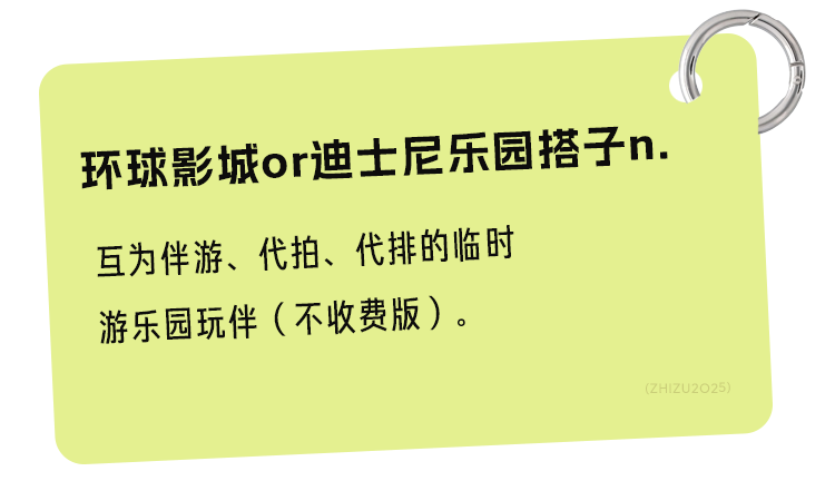 毕竟在世界上最快乐的地方,和男朋友去是拍不出好看照片的,和闺蜜是你要全程举相机的,和朋友去是会嫌 “排队两小时玩两分钟不值”,跟你闹别扭的 —— 为了不毁一天好心情,搭子才是最优解。