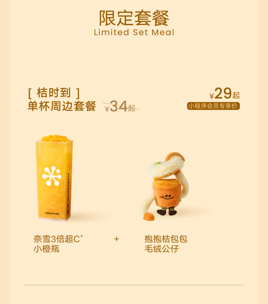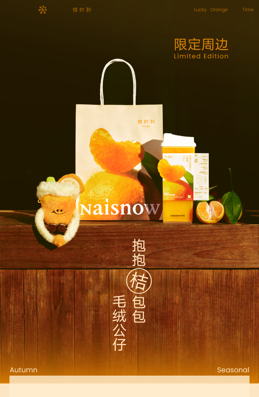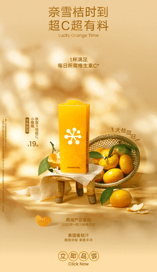 推荐:「点击切换后展开」推出奈雪的茶新品“3倍超C小橙瓶”,以及限定套餐与周边福利,引导线下购买。