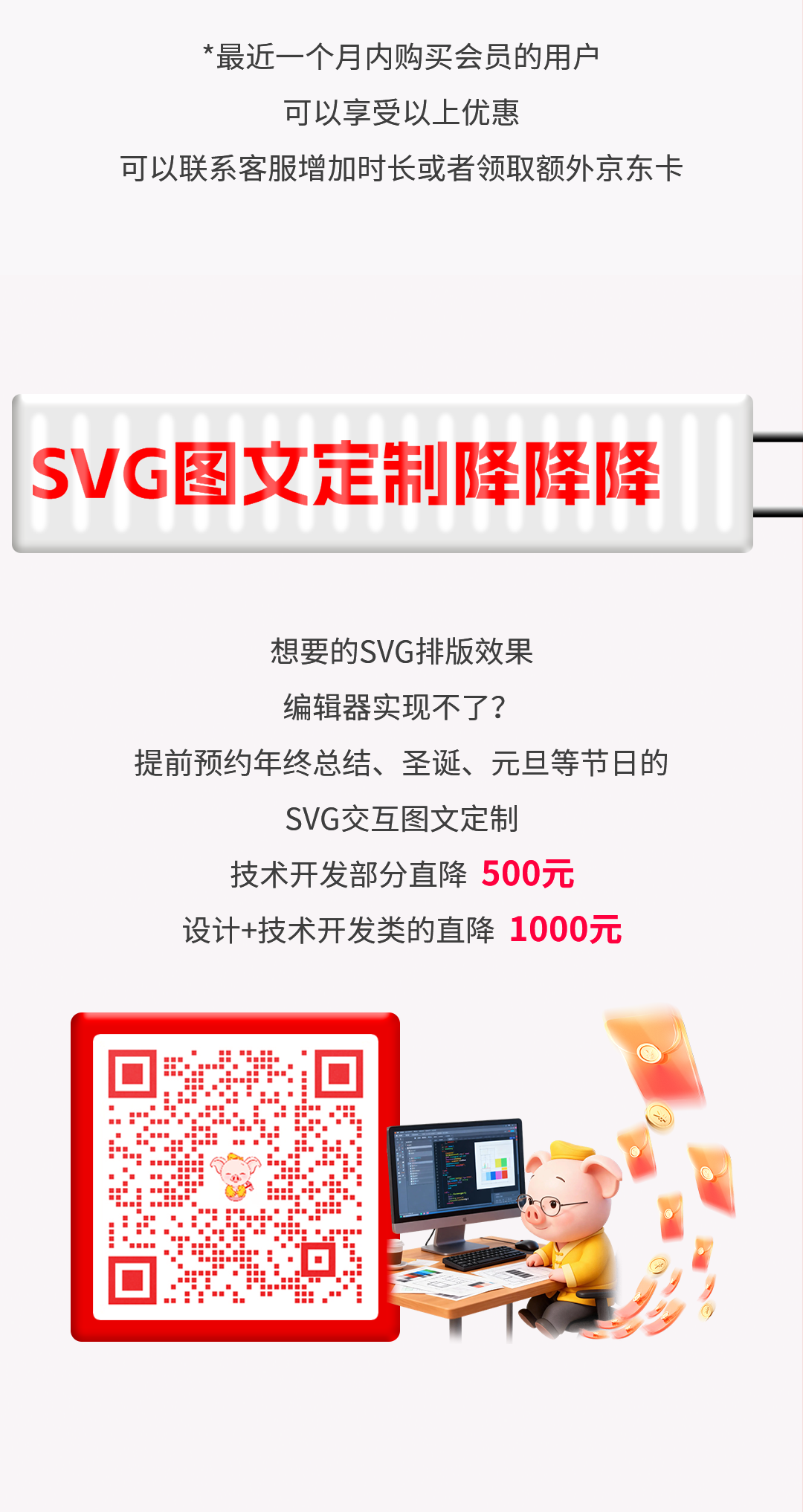 推荐:「上滑」模拟进入神秘入口,然后「点击弹窗」查看不同西游人物相应的礼物和红包,「上滑」引出双十一优惠福利,「自动顺时针旋转切换」展示不同的会员,借此宣传SVG编辑器会员优化福利。