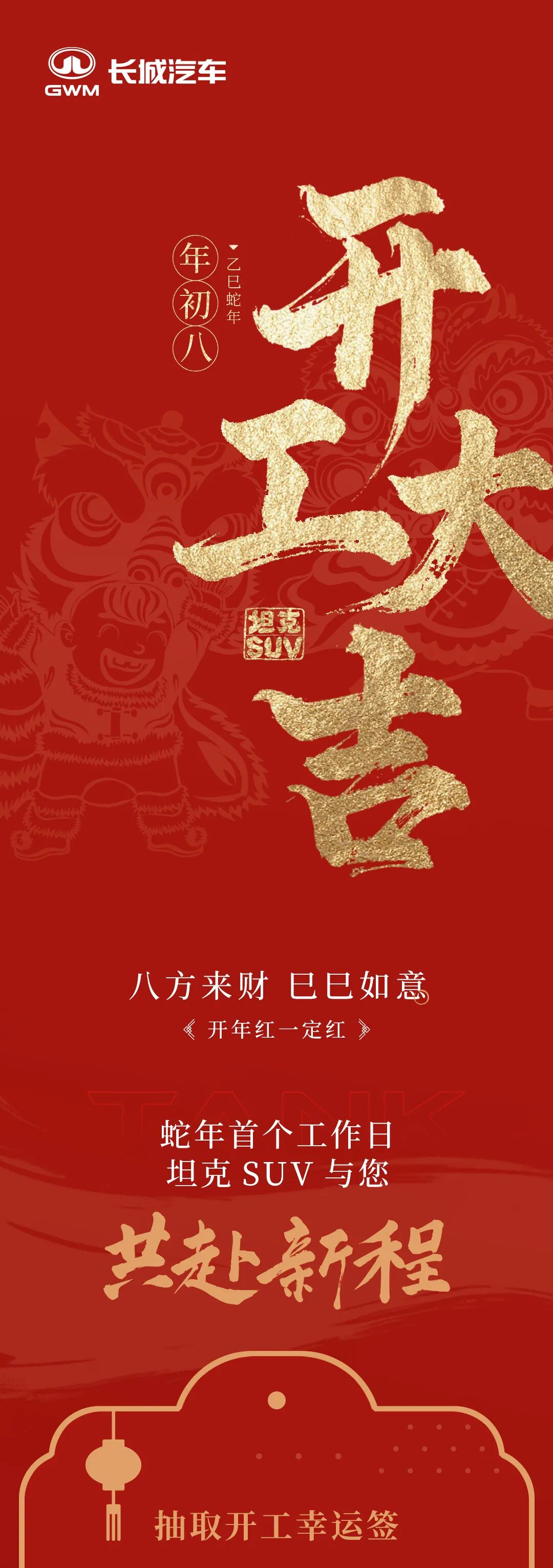 推荐:「点击切换」设置了抽取开工幸运签活动,包含多种好运签,最后祝大家开工顺利,鼓励即刻下订并关注坦克 SUV。