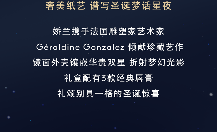 推荐:「点击消失后展开」以“童话”为主题,携手艺术家打造梦幻视觉,强调定制化刻字服务与节日送礼体验,借此推广娇兰的圣诞限定系列。